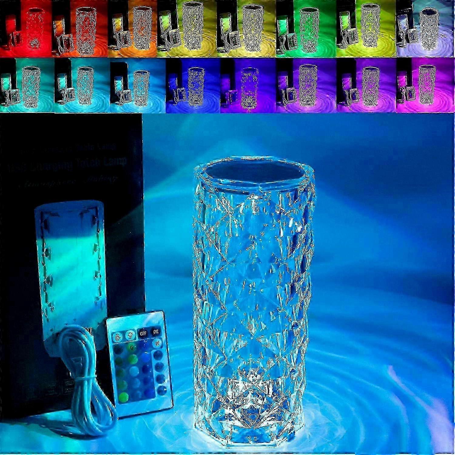 Crystal LED Touch Table Lamp with 16 Color Options, Rechargeable Diamond-Shaped Night Light