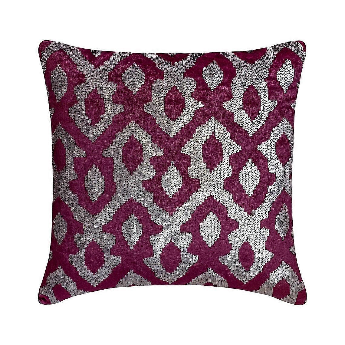 Custom Pillow Case, Purple & Silver 24"x24" Velvet Sequins Decorative Throw Pillows for Sofa, Abstract Pattern Modern Style