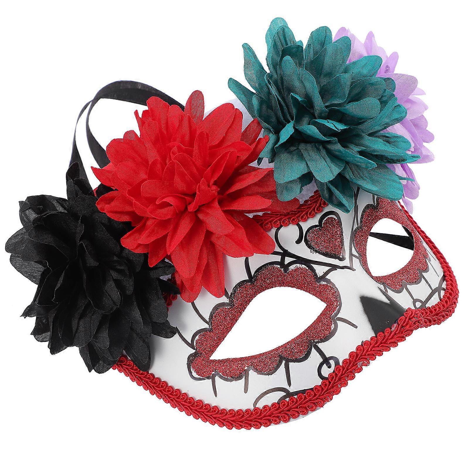 Day of The Dead Flower Skull Mask for Decor 2Pcs Assorted Color Cosplay Mask