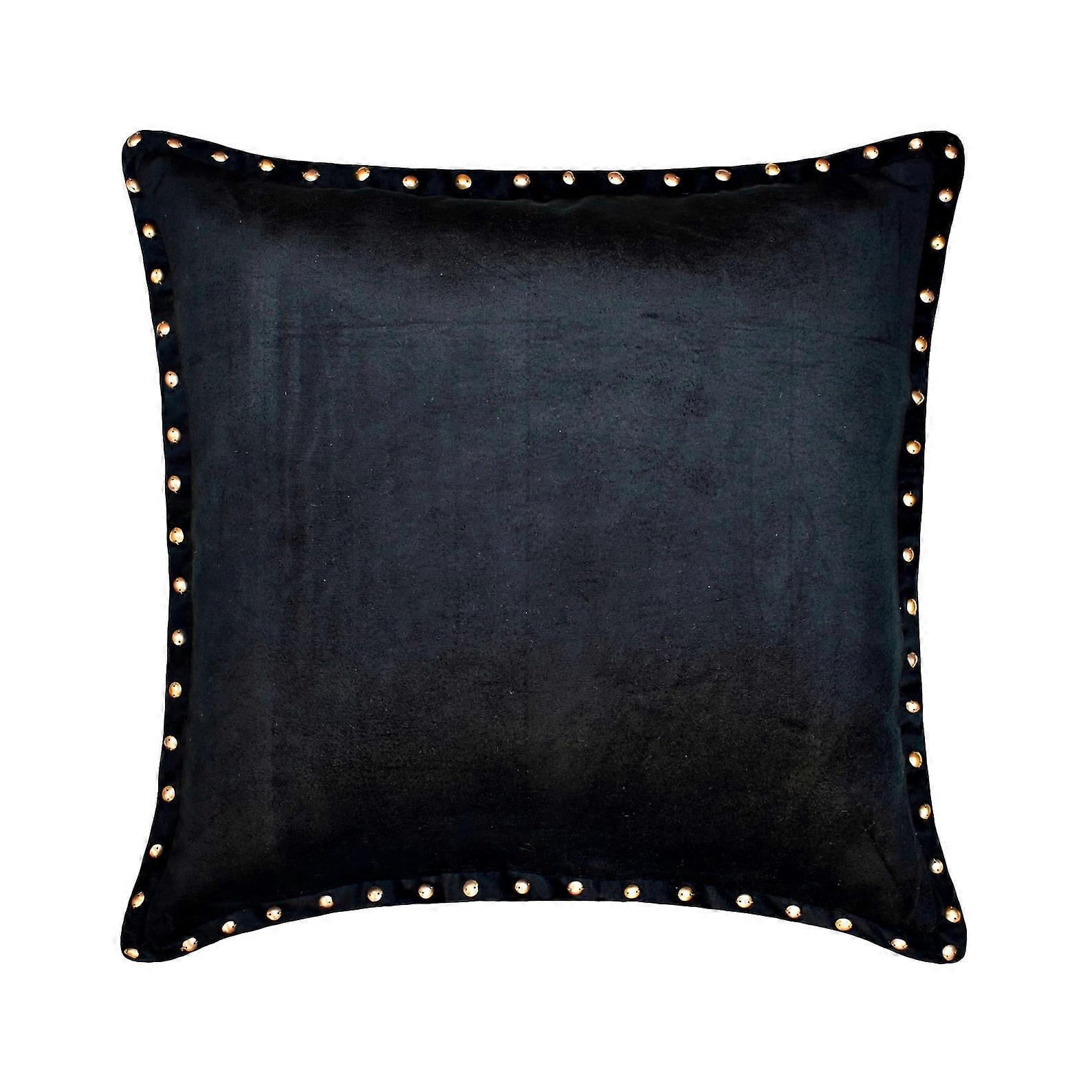 Decorative Black 16"x16" (40x40 cm) Throw Pillows, Velvet Border & Sequins Throw Pillows For Couch, Solid Color Pattern Modern Style - Blagden