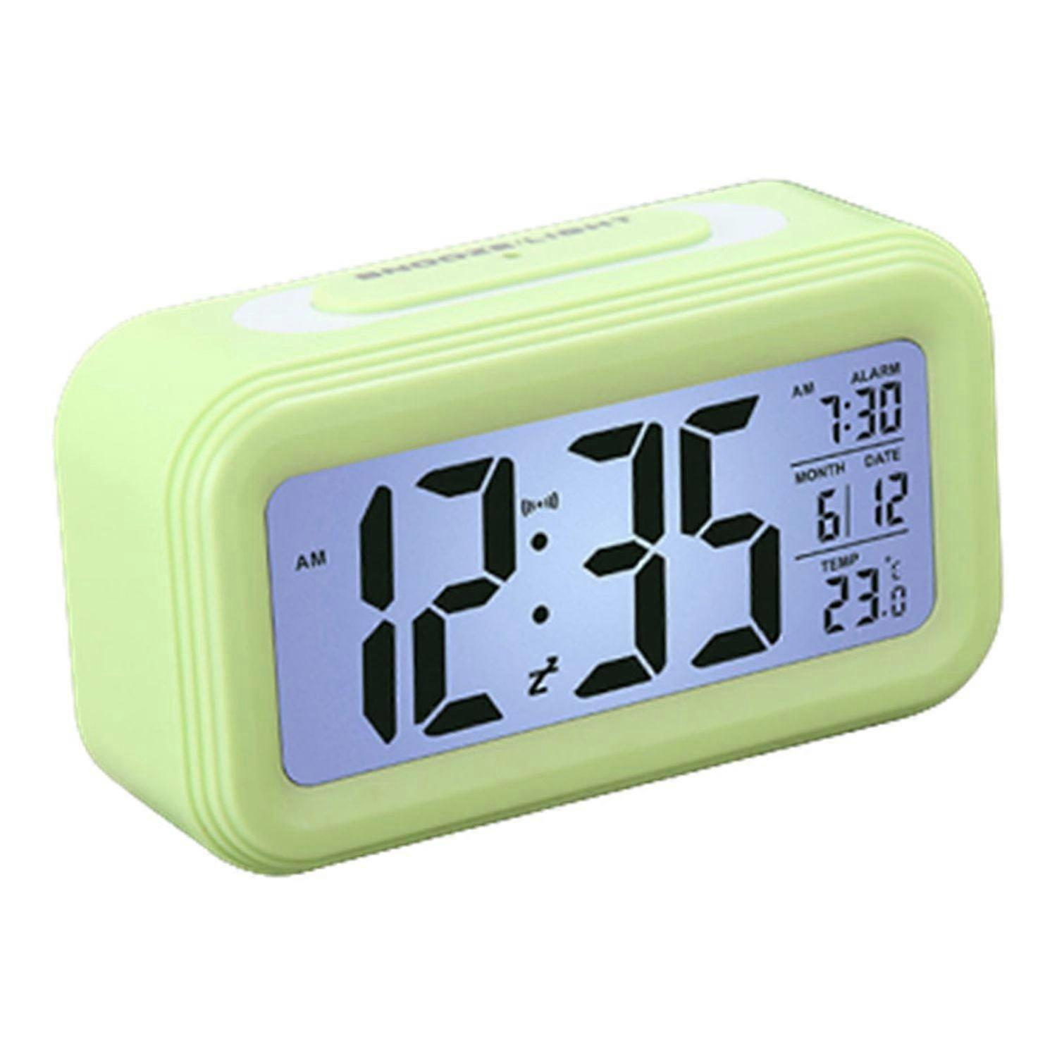 Digital Alarm Clock Battery Powered with Snooze, Temperature, Calendar, Light Control, Easy to Use, Portable for Adults Kids (Green)
