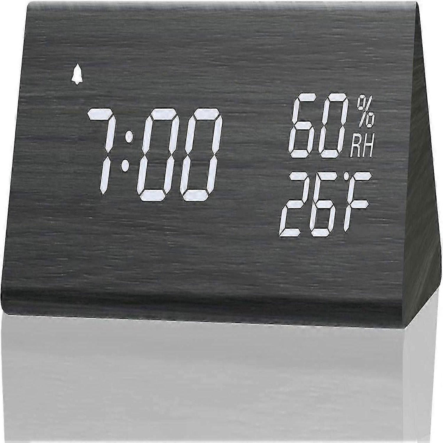 Digital Alarm Clock, with Wooden Electronic LED Time Display, 3 Alarm Settings, Humidity & Temperature Detect, Wood Made Electric Clocks for Bedro