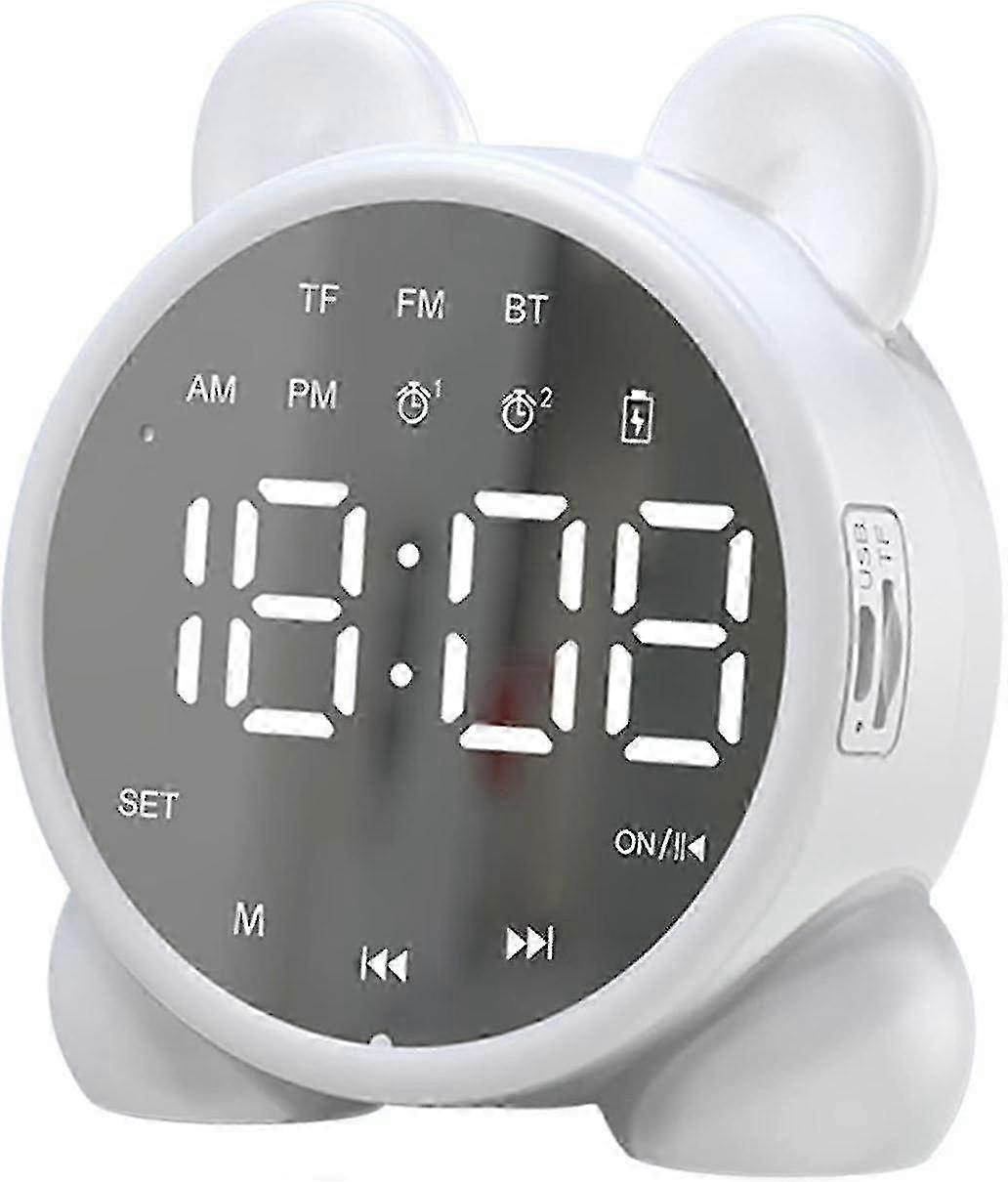 Description: Bluetooth 5.0: Portable bluetooth speaker, built in bluetooth 5.0 wireless transmission, working distance up to 10 meters. Support bluetooth wireless playback, TF card playback, enjoy different ways to play music, with your choice. Multifunction: With high-power 40mm speaker, stereo sound and powerful bass, support handsfree calling. Not only a speaker, but also a dual alarm clock. A day can be set up two different alarm time, five interesting alarm sounds. LED Mirror Display: With LED mirror screen and big white digital display, which makes it easier to read day or night. Three brightness adjustable, soft light will not hinder going to sleep in night. The bluetooth speaker comes with a charging cable that can charge from your computer, power bank or any device with a USB port. Perfect Gift: Designed with cute, elegant and stylish design. This alarm clock bluetooth speaker is a perfect gift for kids and adults. Perfect for bedroom, school, living room, office, etc. Specification: Material: ABS. Size(LxWxH): About 85x39x95mm/3.35x1.53x3.74inch. Frequency response range: 80HZ-20KHZ. Signal to noise ratio: 85dB. Bluetooth version: 5.0. Interface: USB. Output power: 3W. Package includes:1pc x Bluetooth Speaker..Items from Sheng Xinshun's shop