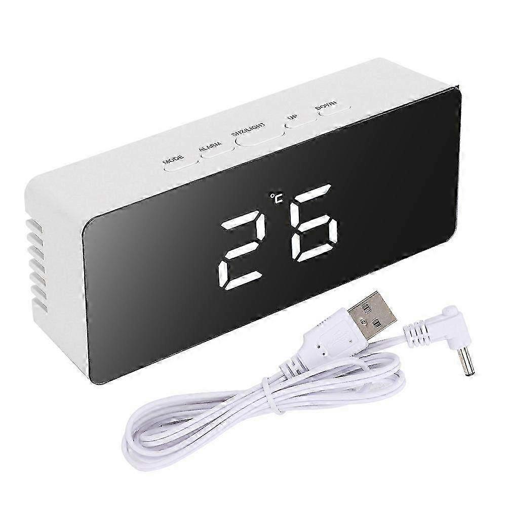 Digital LED Night Light Alarm Clock with Snooze Feature - ABS White Mirror Surface Clock (Battery Not Included)