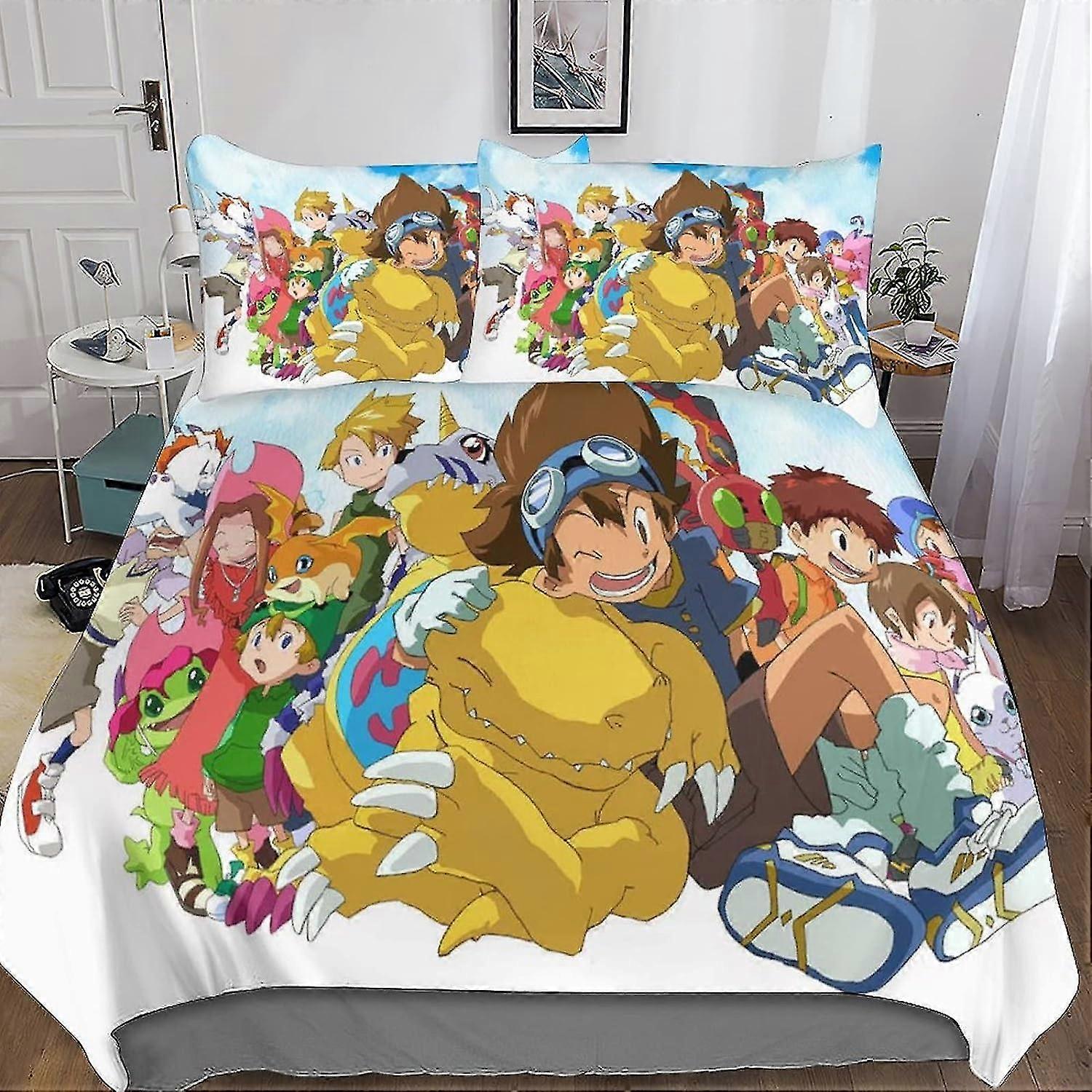 Digital Monster Duvet Cover Set 3D Bedding Set Trainer Comforter Cover Set Microfiber 3 Pieces with Zipper Closure Soft Double