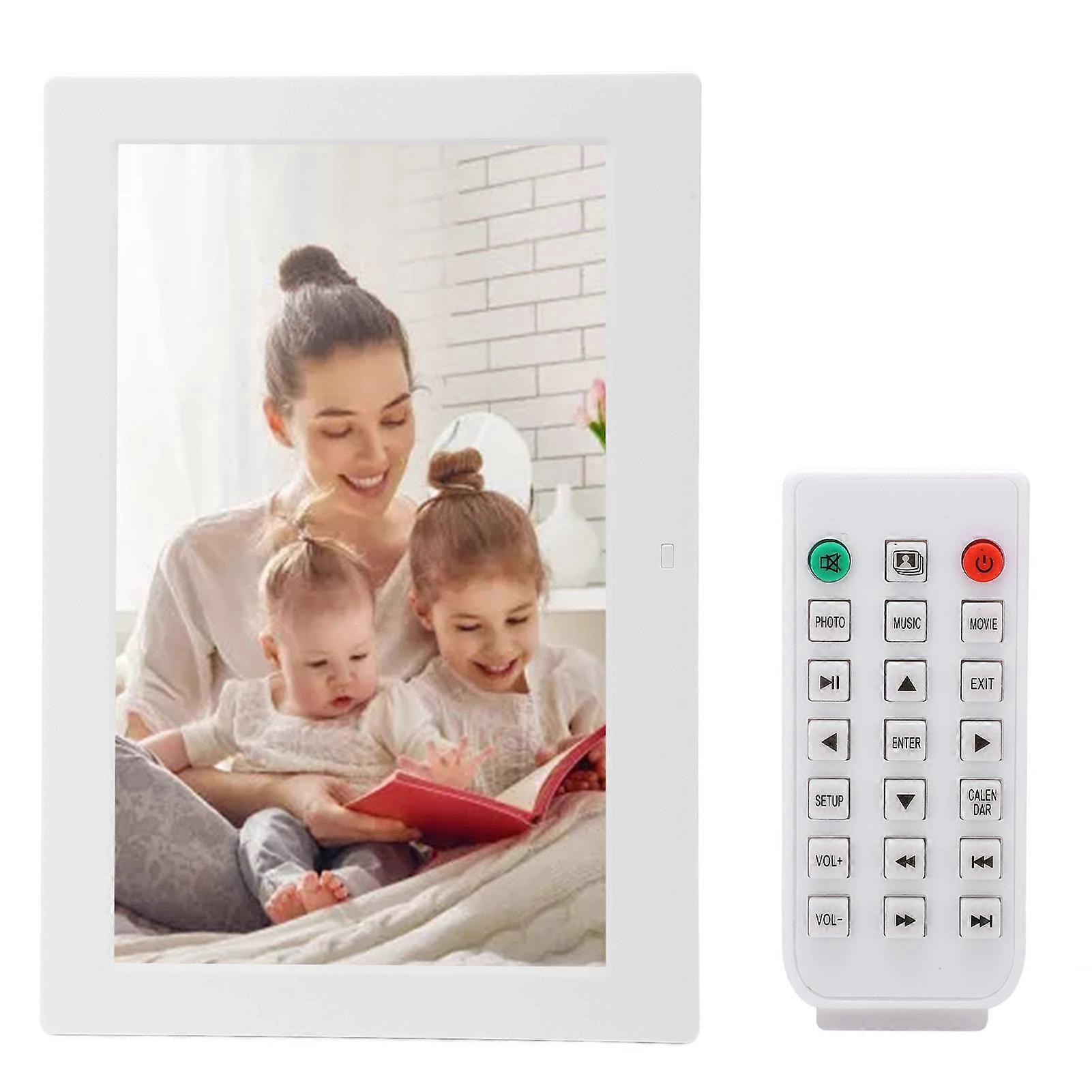Digital Photo Frame White 13in HD Smart Video Music Playing Electronic Picture Frame With Remote Control 100‑240V AU Plug Item Type: Digital photo frame Material: ABS Weight: Approx. 1188g/41.9oz Color: White Resolution: 1080P Remote Control Battery: Button battery CR2025x1 160mAh(Shipped with built in battery) Screen: 13in LED digital screen(16:10) Support Photo Format: JPEG, photo can be enlarged and rotated Supported Video Formats: MP4, AVI, MPG, FLV, VOB Supported Sound Formats: MP3, WMA Supported Storage Media: Storage card, multi media card, memory stick card, U disk Video Format: Support NTSC, PAL switching Output Interface: Earphone output interface Control Method: Manual, remote control or automatic play of pictures, music, video ads after startup, support mixed playing