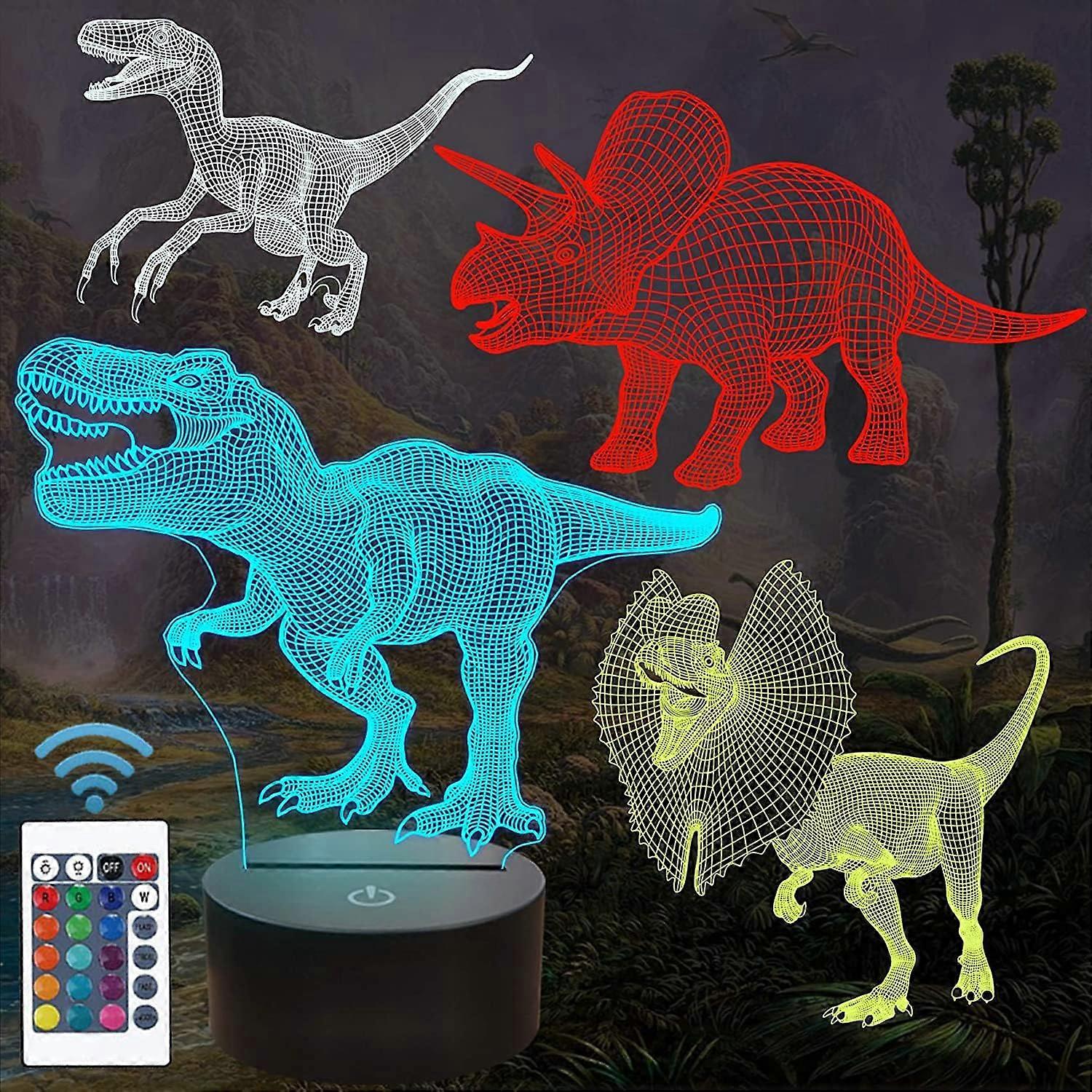 Dinosaur Gifts, T-rex Dinosaur 3D Night Light for Kids (4 Patterns) with Remote Control & 16 Colors Changing & Dimmable Function & Gift Wrap, Xm