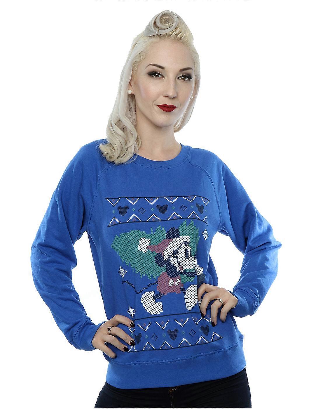 Disney Women's Mickey Mouse Christmas Tree Sweatshirt XX-Large Royal Blue