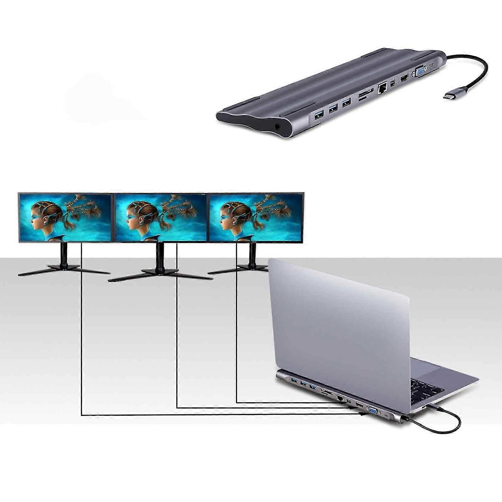 11 IN 1 USB C Hub: Perfectly combined the function of USB C Hub and docking station, 1.HDMIx1: 4K, Downwards Compatible With 1080P 720Petc .2.USB*3:Hight speed USB, Power supply up to 4.5W max,3.USB- C Female Port :20V 3A, Support max 60W power adapter Make sure that the host USB-C on your device complies with the USB3.0/3.1 . Ethernet:Adaptive 10/ 100mbpsEthernet 6.SD/TF Card Reader:Support multiple types of TF and SD cards,SD card and TF card cannot used at the same time.7.VGA:1080P 60Hz, downward compatible with 1080P,1080I,720P HDTV and VGA support 1080P simultaneous output.8.DC3.5 Audio:3.5mm Audio