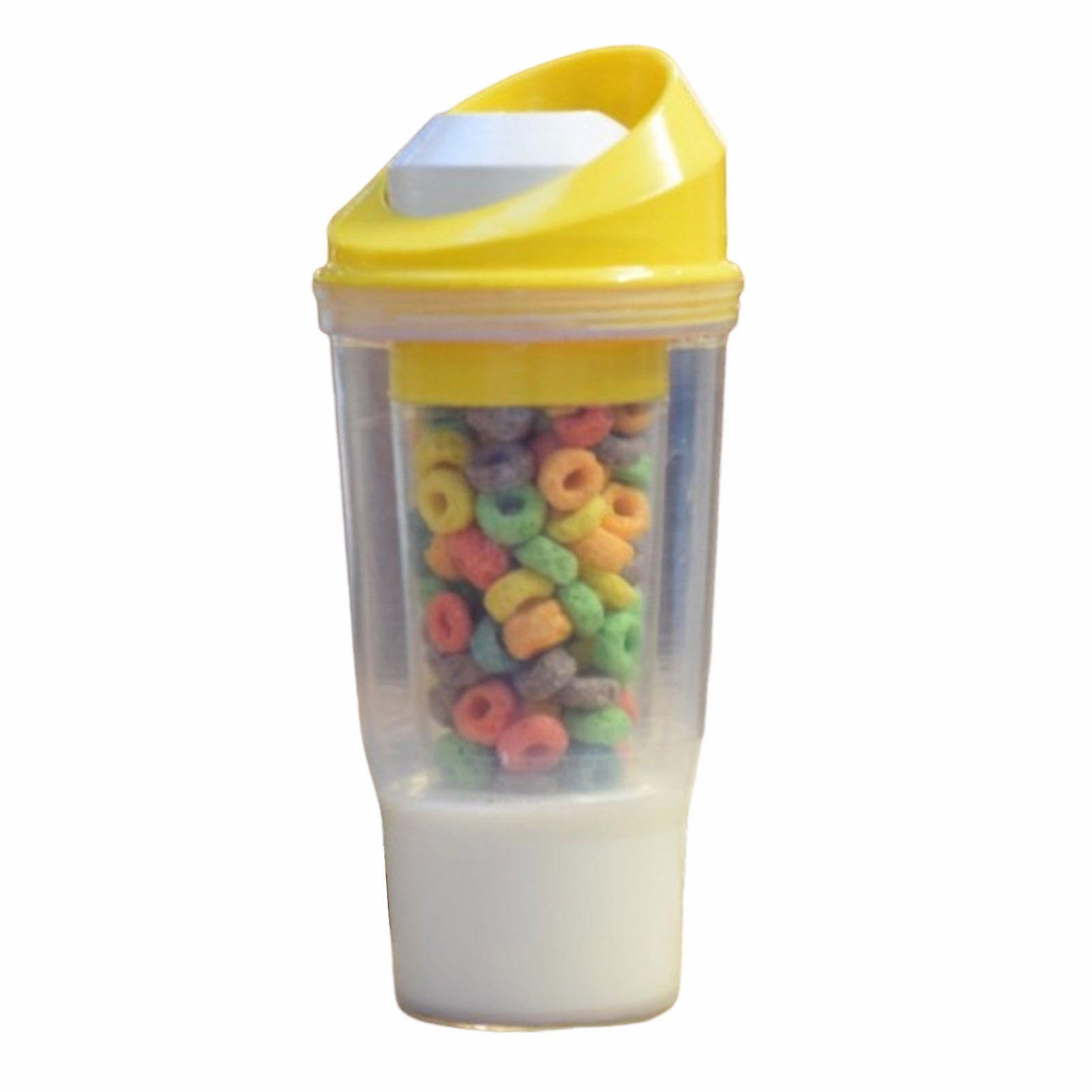 Double Layer Cereal To-Go Cup Leak-Proof Breakfast Container with Separate Compartments for Milk & Cereal Portable Cereal And Milk Cup for Quick Break