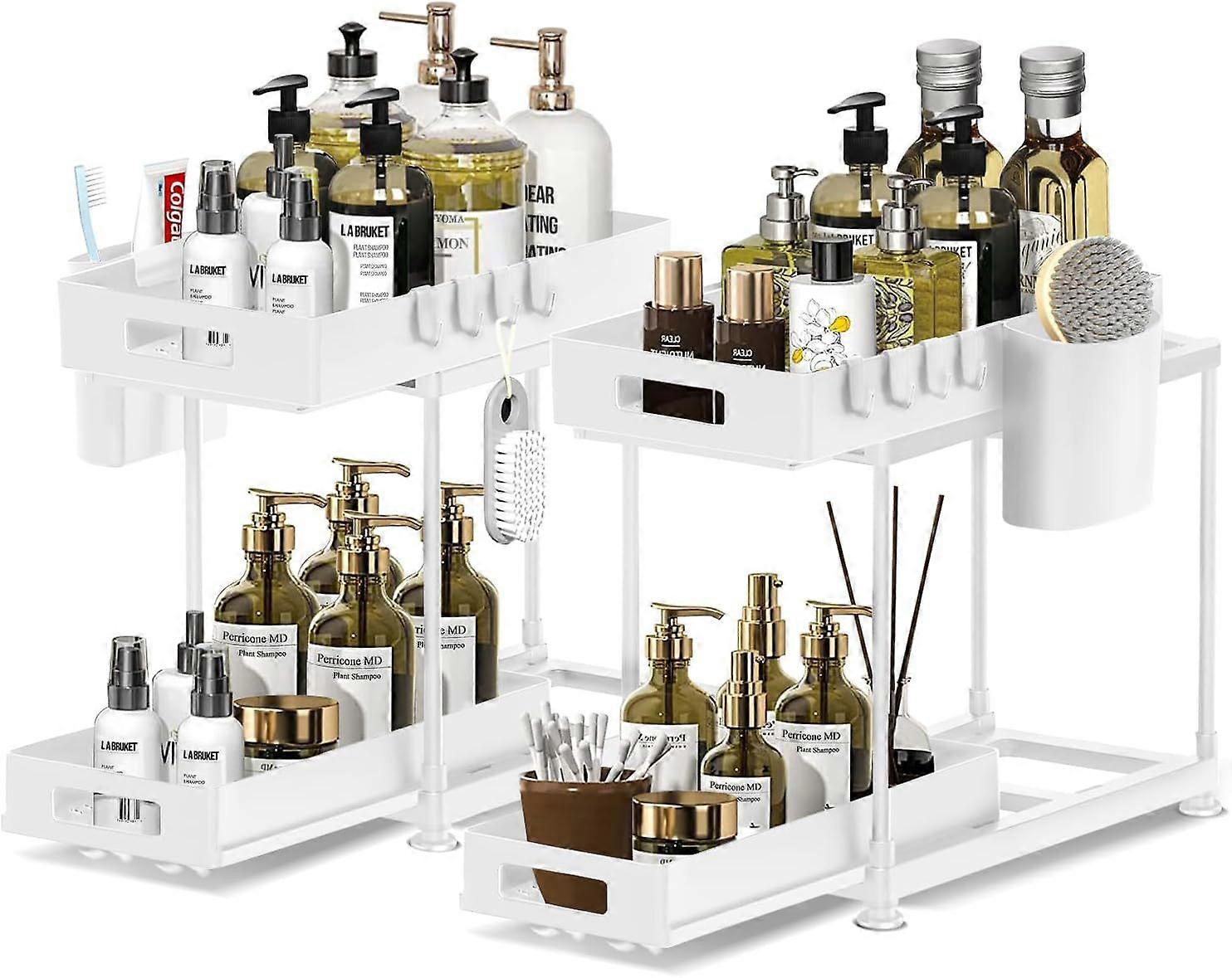 Double Layer Sink Pull Out Shelf Kitchen Organizer White