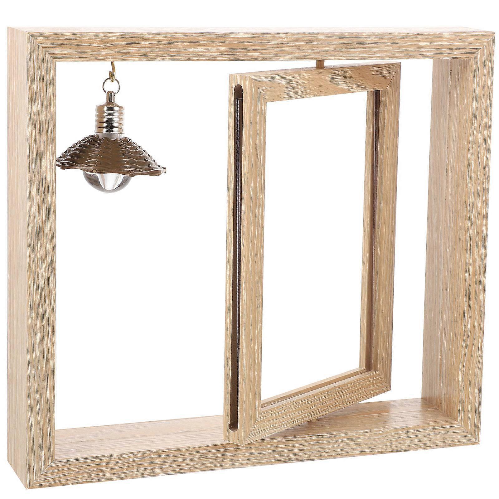 Double Sided Rotating Wood Picture Frame Rotating Wood Photo Frame Home Decor with Lamp