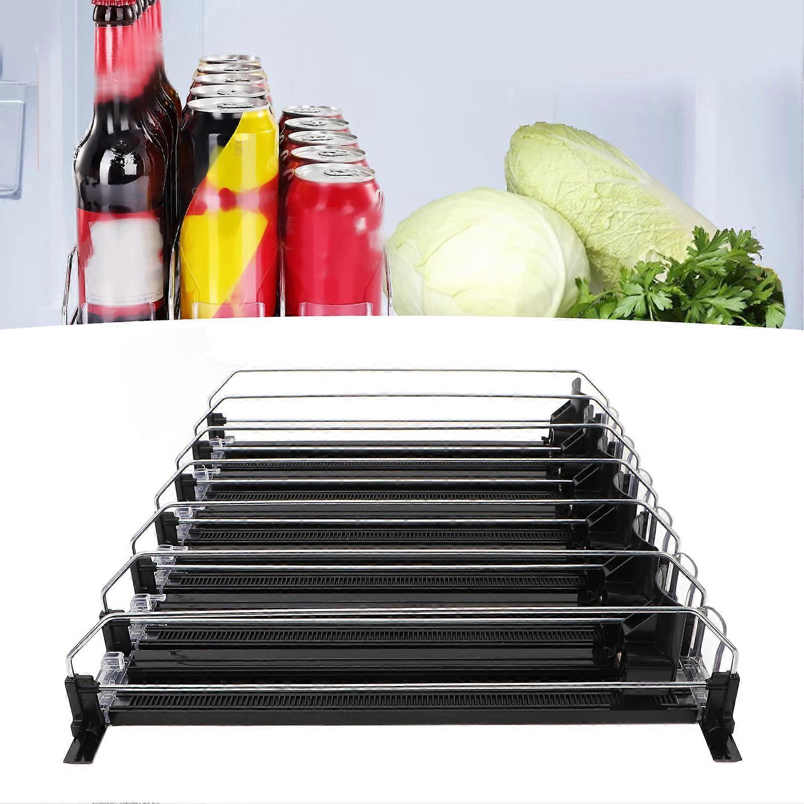 Drink Organizer for Fridge ABS 6 Rows Adjustable Easy Loading Dampening Pusher Glide Soda Can Dispenser for Beer Beverages Black