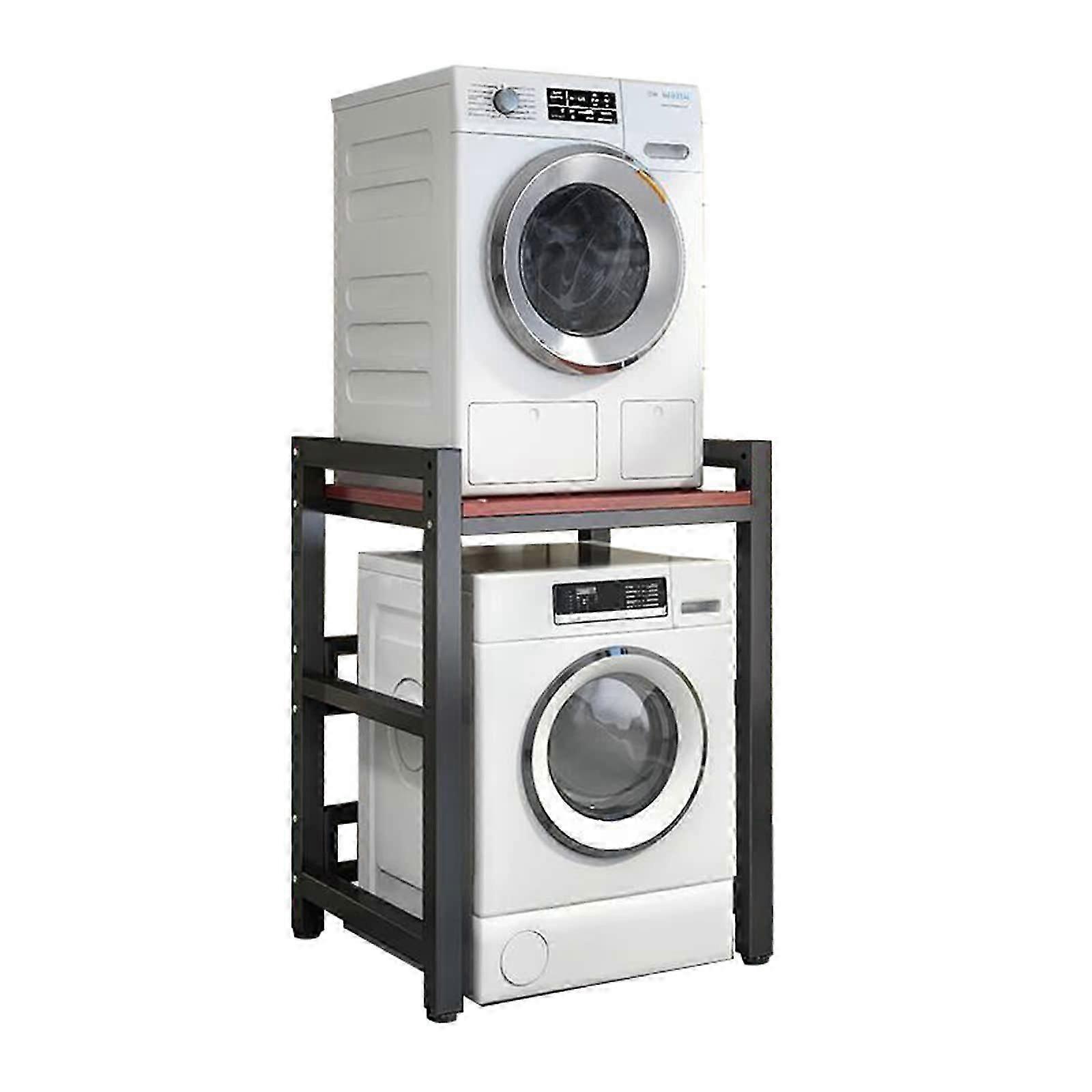 Dryer Stand Height Adjustable Portable Stacking Kit For Front Loader Tumble Dryer, 400kg Load, Black Frame Teak