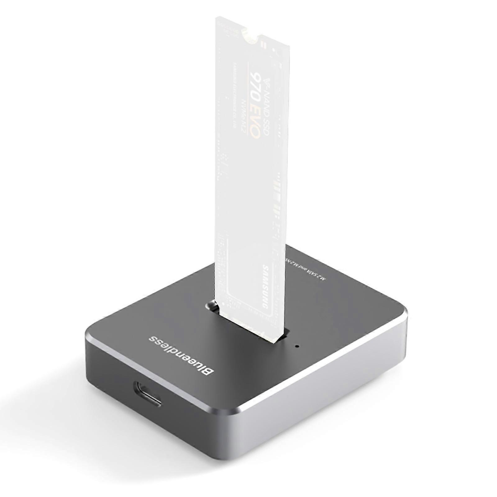 Features: Tool-free design makes plug or unplug an M.2 SSD smoothly, plug and play. offering an simple way to build your own external storage solution with this small m.2 NVME enclosure for on-the-go lifestyle. Enclosure will have you covered as long as you have an M.2 PCIe NVMe M Key/B+M Key SSD Works perfectly no matter what OS your device is equipped with most of system. Uses USB 3.2 Type-C connect and use the m.2 SSD can reach super-speed data transfer up to 10Gbps. Bottom non-slip design equipped with non-slip silicone pads, the adapter is more stable on the desk. Specifications: Supporting device: SATA/NVME M.2 (dual protocol) Color: Space grey Support capacity: M.2 up to 2TB Product size: 51x66x13mm Material: Aluminium alloy Weight: 140g Package includes: 1x Docking Station 1x USB 3.1 cable