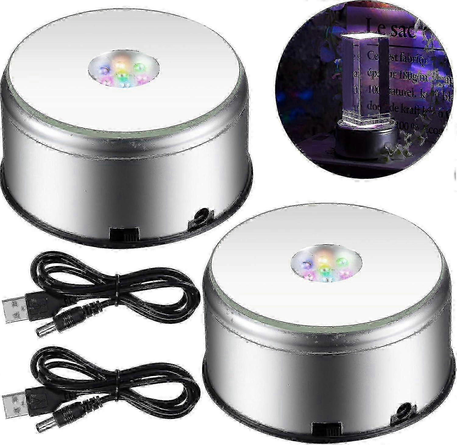 e 7 Led Display Base Colorful Light Rotating Crystal Display Base Stand With Usb Power Cable For Crystals Glass Jewelry Art