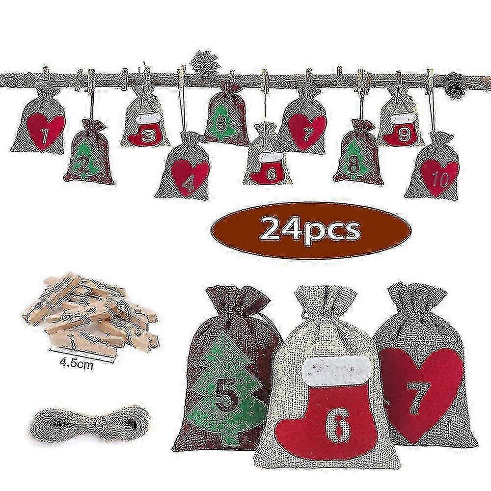 e Booster 24pcs Christmas Gift Bag Linen Drawstring Drawstring Mouth Countdown Advent