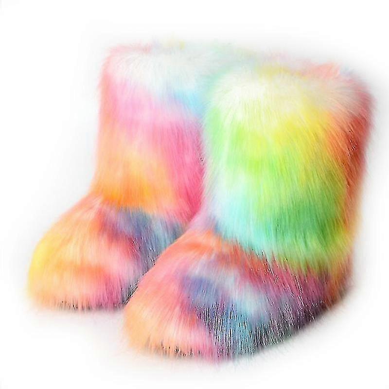 Evago Faux Fur Shoes Women Fashion Warm Faux Fur Boots For Winter Multicolors Snow Boots Ox Tendon Sole