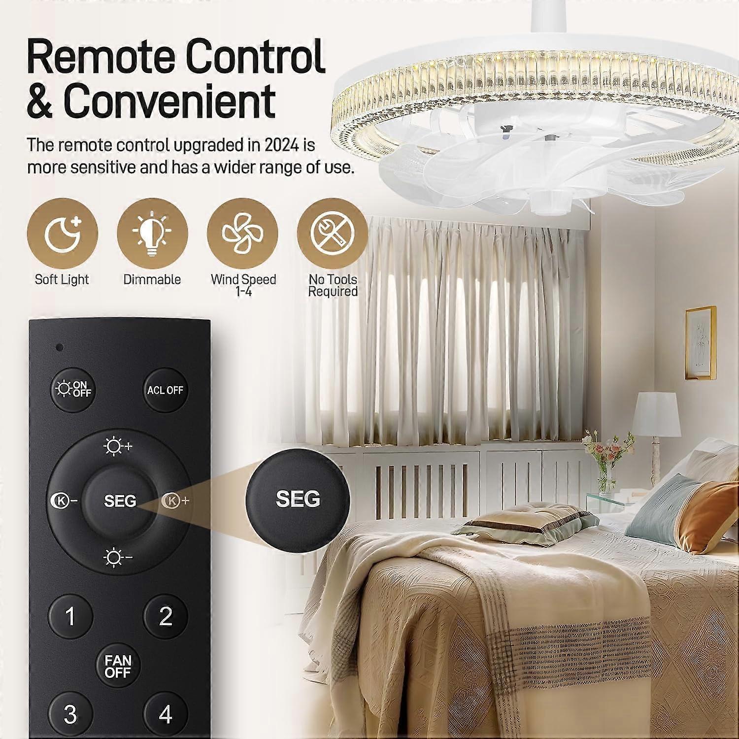 ✨✨【Enhanced Remote Control】Experience effortless navigation with our upgraded remote control, resembling the remote. Intuitive buttons allow for control over light dimming, fan speed adjustments, and on/off functions, giving you ultimate comfort control.