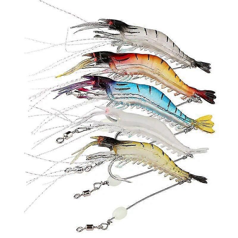 fishing lures Bionic Shrimp With Hook Luminous Shrimp-shaped Soft Bait Fake Bait Sea Fishing Baits Artificial Lures Fishing tool.The streamlined bait wood is loaded with lead to make it more smooth in the water and has an advantageous throwing distance.The wooden structure of the shrimp body, which can quickly sink and efficiently attack the fish in the deep field, is a typical rapid strain , and the speed of the descending standard is about 2.2 - 2.7 seconds / m.The bait wood is made of Japanese imported fabric, with bright texture and color, and reflective.Double-layered umbrella hooks for durability and beauty.The tail of the shrimp has a luminous color that attracts the fish better.Product specifications:Bait type: crank fishing bait.Depth: TopwaterHook: 2 * Strong treble hookRing: flat ringPackage Included: 1 * Fishing bait.