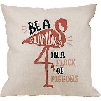 Flamingo Pillow Cover,Flamingo Decorative Throw Pillow Flamingo with quotes be a Flamingo in a Flock of Pigeons Pillow cases Cotton Linen Square Cushi