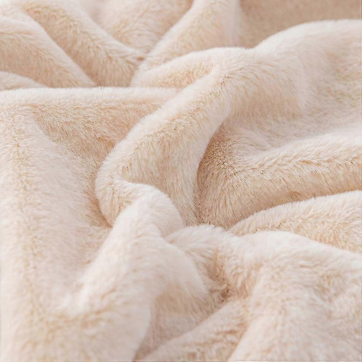 Fluffy and warm sofa blanket, soft plush decorative blanket, cute bubble blanket, beige apricot, 70100cm