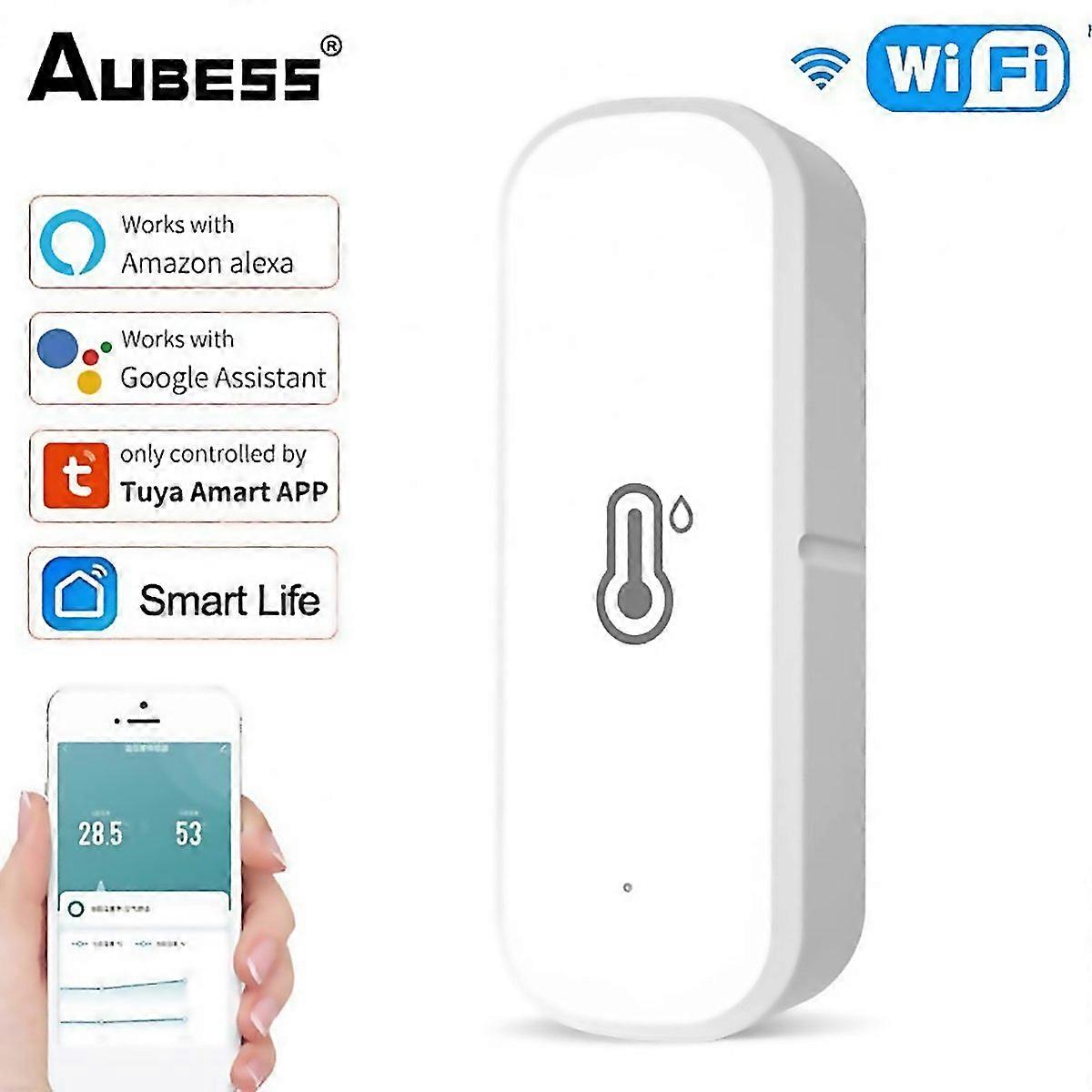 Fangrui Product Details Tuya Wifi Temperature Humidity Sensor Thermometer Hygrometer Smart Home Security Alarm For Smart Life Alexa Google Assistant Description: Material : Abs Size: 70*24*19mm Product Weight: 30g Battery:lr03-1.5v/aaa*2 Wi-fi Frequency: 2.4ghz Ieee 802.11 B/g/n Temperature Measure Range: -20c ~ 60c Humidity Measure Range: Rh ~ Rh Temperature Measure Accuracy: 1c Humidity Measure Accuracy: Rh Specifications: Intelligent Linkage When The Ambient Environment Change, You Can Do Intelligent Linkage. For Example, The Air Conditioner Will Be On And Turn To Specified Temperature Automatically When The Room Temperature Surpass 28. And The Humidifier Will Spray When The Humidity Is Lower Than Rh. Share Devices You Can Share Your Added Devices With Your Family Members, So They Can Also Monitor The Ambient Environment. Temperature Unit Selection In App You Can Choose Or As The Temperature Unit Through App. Third-party Voice Control Works With Amazon Alexa, Google Assistant. Low Battery Alarm The Battery Level Can Be Monitored. Temperature And Humidity Changes. Temperature And Humidity Change Curve, Historical Data. Wall-mounted, Easy To Install Package Included: 1*sensor 1*instruction 1*back Sticker