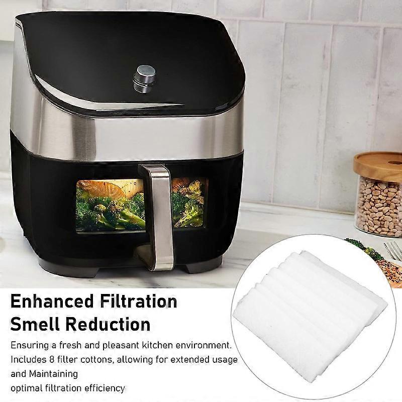 Feature: 1. Compatibility: Fryer replacement filter is specially designed to fit for Instant Vortex Plus 6 Quart fryer with ClearCook and OdorErase. 2. Smell Erase Technology: Built in replaceable air filters remove smell during cooking to reduce lingering cooking smells. 3. Easy To Replace: Lift the filter housing up, from the top of the unit. Remove the old filters and dispose of them properly. And insert the new filter into the housing. 4. Enhanced Air Quality: The filter helps to trap grease and smoke particles, enhancing the overall air quality and preventing them from circulating in your kitchen. 5. Long Lasting Performance: Each pack includes 8pcs filters to provide extended usage and maintain the efficiency of your fryer. Specification: Item Type: Fryer Replacement Filter Material: Fiber Weight: Approx. 16g / 0.6oz Product Size: Approx. 16x5cm / 6.3x2.0in Compatible: for Instant Vortex Plus 6 Quart Package List: 8 x Fryer Replacement Filter How To Use 1. Unplug the machine from the power outlet. 2. Lift the filter housing from the top of the unit. 3. Remove and dispose of the old filter properly. The filter is not recyclable. 4. Remove 2 new filters from the packaging and insert them into the filter housing. 5. Insert the filter housing back into the unit and plug the power cord back in. 6. Press both the bake and reheat buttons simultaneously to reset the filter. 7. The filter LED on the top panel of the machine will turn off. You can now start cooking. 8. The OdorErase filter will automatically remove smell and grease residue during cooking.