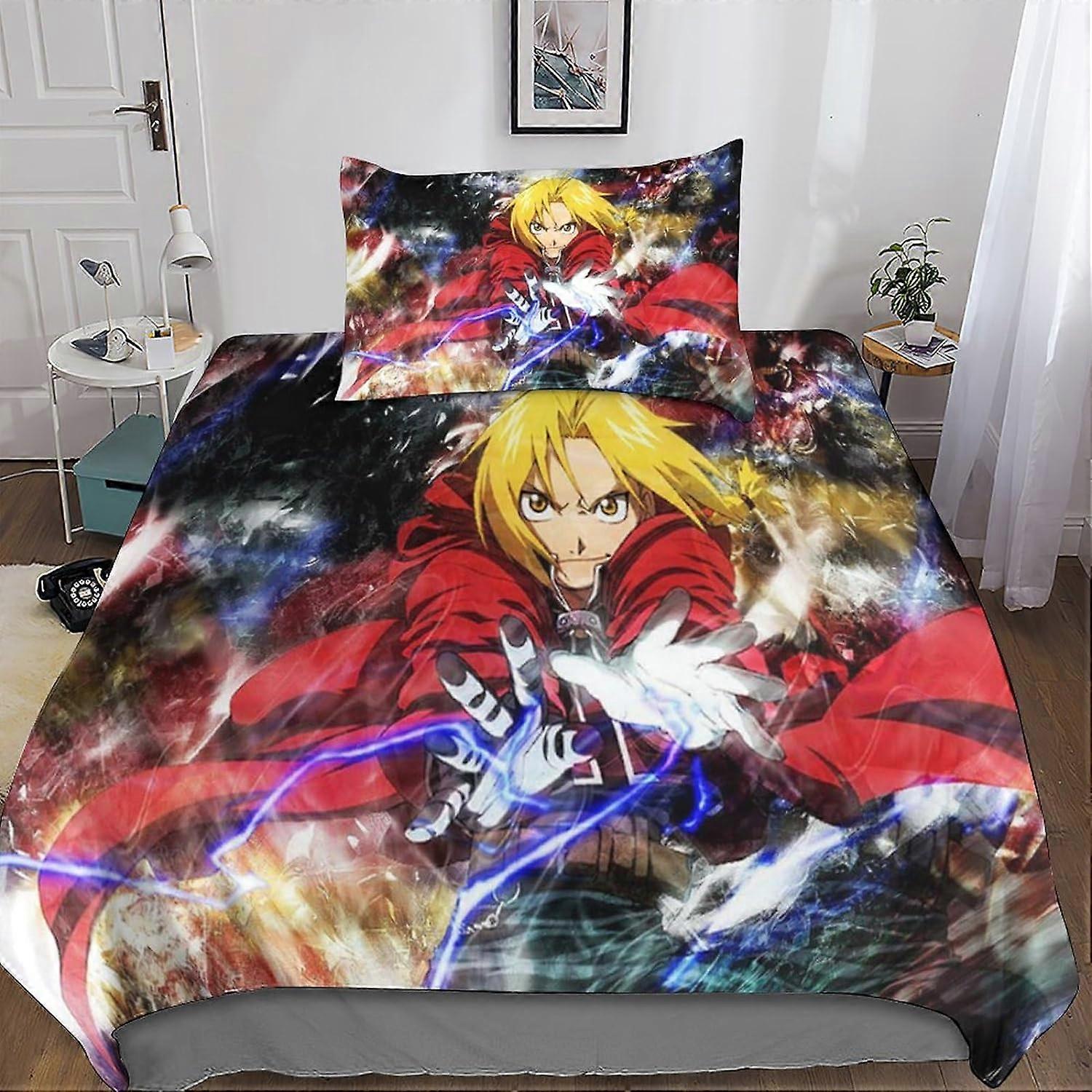 Fullmetal Alchemist 3D Duvet Cover Sets, Bedding Set and Pillowcase for Single or Double Bed Microfiber with Zipper Closure 2 Pcs Single