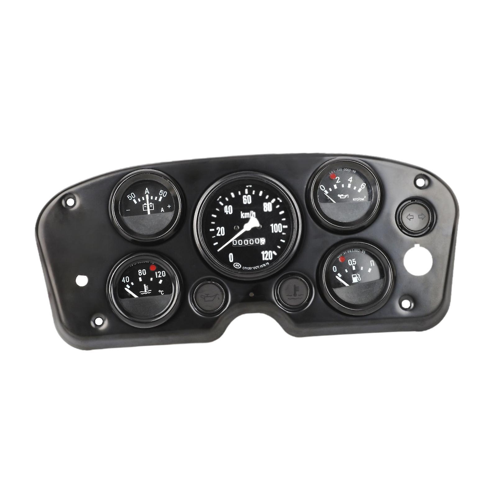 Description: Comprehensive Monitor: This 5 in 1 Gauge Cluster includes a water temperature gauge (40-120 degrees C), v meter (-50-50A), oil pressure gauge (0-6krc/cm2), oil level gauge, and speedometer (0-120 km/h). It provides all the essential readings you need for your vehicle's performance.Quality Material: Made from ABS and metal, this Automotive Gauge Meter is designed to withstand the rigors of daily use while maintaining its accuracy and reliability.Compact Size: With dimensions of 16.5cmx38cm, this 5 in 1 dashboard gauge is compact enough to fit in most vehicles without taking up too much space, allowing for easy installation and use.Easy Installation: The package includes a 5 in 1 dashboard instrument panel, making it easy to install and start using right away.Versatile Use: Whether you're monitor your daily commute or keeping an eye on your vehicle's performance during long trips, this 5 in 1 dashboard gauge provides the comprehensive data you need to ensure safe and efficient driving. Specification: Material: ABS, Metal Color: Black Size Chart: 16.5cmx38cm/6.50inchx14.96inch Package Includes: 1x 5 in 1 Gauge Cluster Note: Please allow slightly errors 1-2cm differences due to manual measurement.
