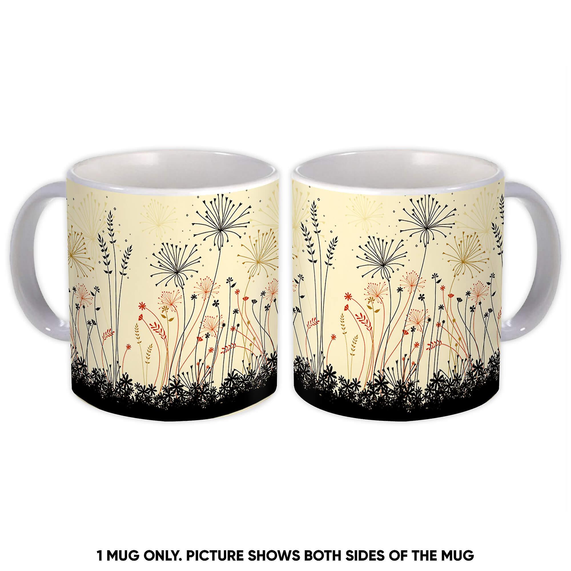 Gift Mug: Shrub Grass Pattern Flowers