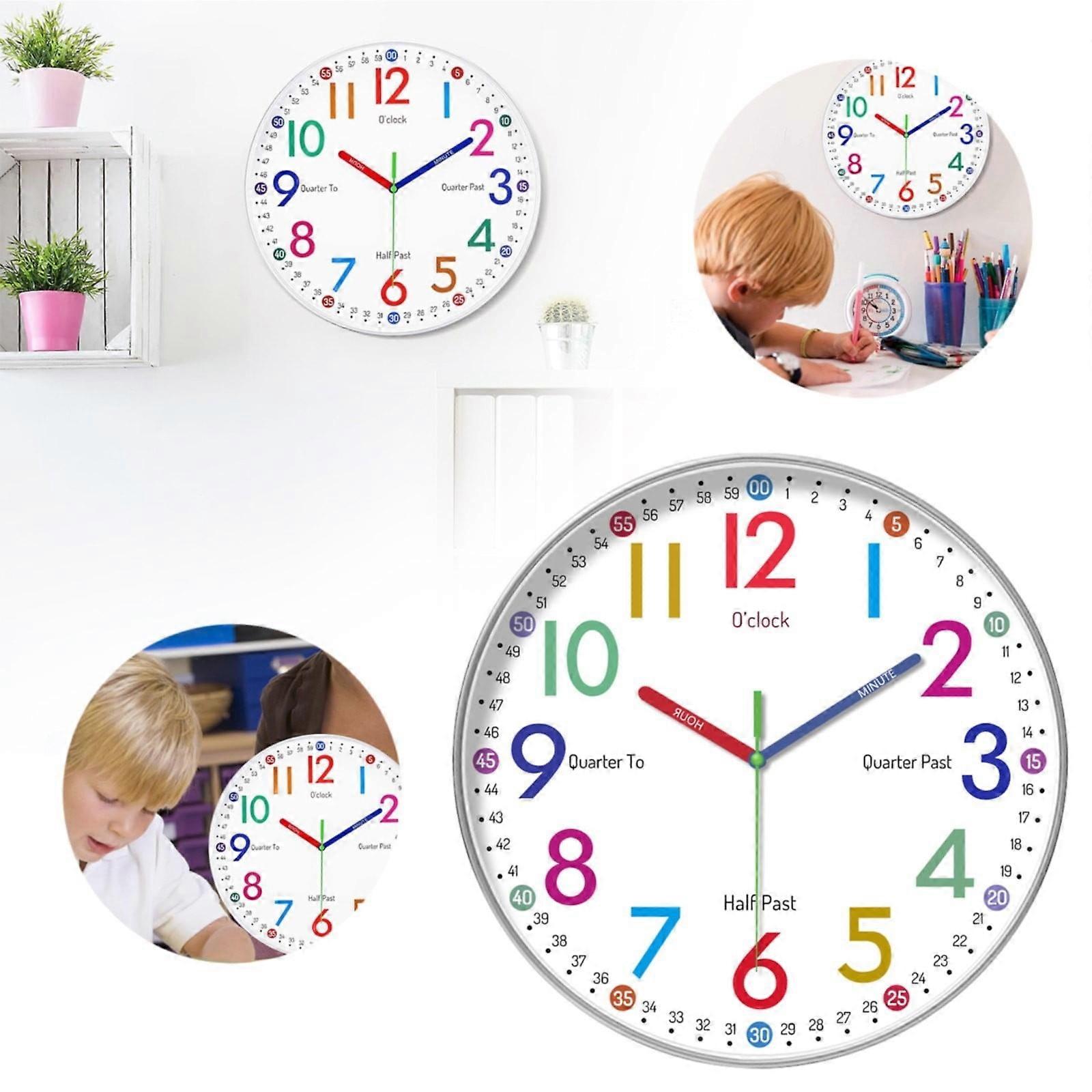 Giyblacko Marstey Kids Teaching Wall Clock - Large Silent Battery-Powered Clock for Children to Learn Time (Battery Not Included)