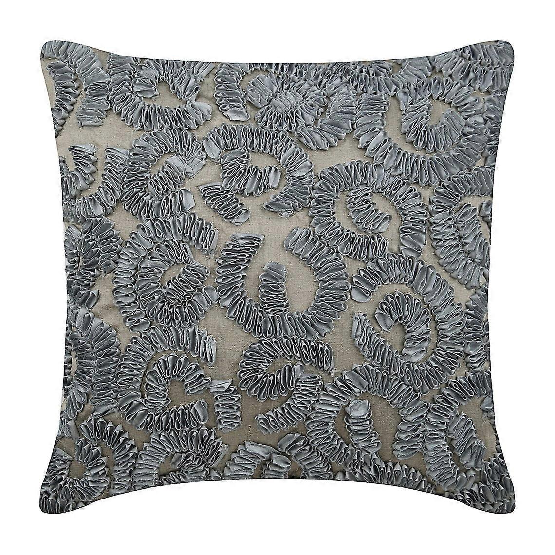 Grey 12x12 inch Art Silk Throw Pillow Cover, Modern Geometric Abstract Design, Ribbon Scroll Pattern, 30x30 cm Square Pillowcase