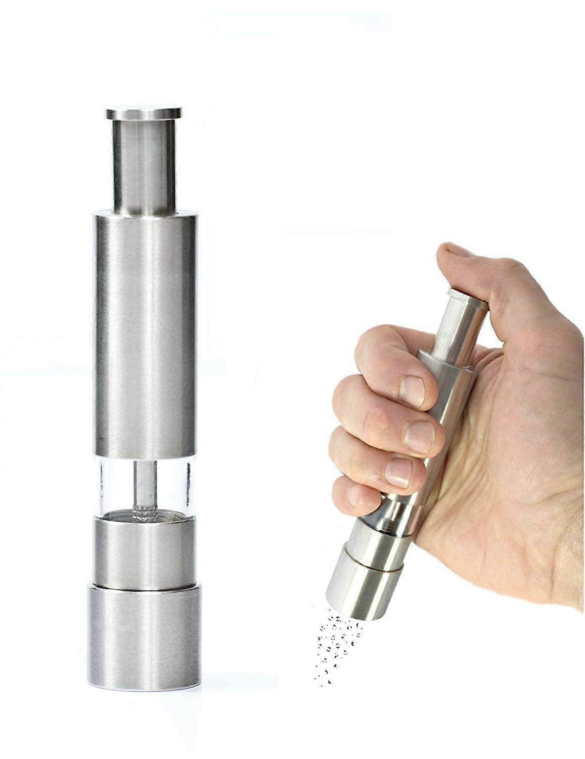 1pcs Grind mills. simply press the top button to send the grinding rod down through the contents of the mill to add fresh ground salt and pepper to any dish or recipe. Having more than one salt and pepper grinder in your home or kitchen makes daily life just a little easier. Keep a set of salt and pepper mills on the dining room table and another on the kitchen counter for easy access while cooking. Grind Cooking Gadgets Salt and Pepper Grinde Solid Stainless 1pcs Grind mills Easy To Use