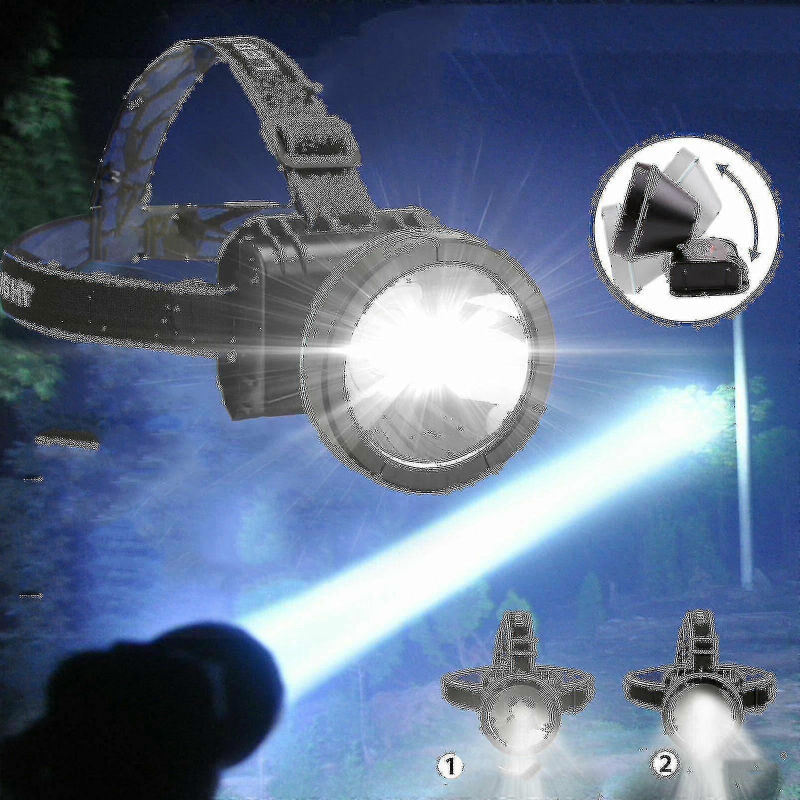 Super Bright Head Lamp Head Torch Rechargeable Headlight Torch 5000 Lumens for Hunting Head Lamp Head Torch Features: Super Bright: Head Lamp Head Torch has Ultra bright LED bulb for long distances, beam let youll be able to see up to 200m/660ft away even. Adjustable: The Head Lamp Head Torch Angle is adjusted, lamp holder can be 0-90 degrees to rotate, Head Lamp Head Torch with elasticated adjustable headband, use more flexible. USB Rechargeable:Our Head Lamp Head Torch Built-in rechargeable batteries,2 switch modes: high/low, Head Lamp Head Torch convenient for different place to use Head Lamp Head Torch Waterproof and Durable: Head Lamp Head Torch is protected against splashing or spraying water from any angle, but cant use diving. Application: Head Lamp Head Torch Suitable for Indoor or outdoor activities, such as running, hiking, hunting, fishing rain etc., and indoor working light. Good Choice of Construction Head Lamp Head Torch , Travel Headlight, Hiking Headlight, Fishing Headlight, Camping Headlight. Head Lamp Head Torch Specification: Type: Head Lamp Head Torch Head Lamp Head Torch Material: ABS Head Lamp Head Torch Light Color: White Light Head Lamp Head Torch Shell Color: Black+Blue Head Lamp Head Torch has 2 Modes: High-Low Head Lamp Head Torch Power: Built-in Rechargeable Lithium Battery 1800mAH Head Lamp Head Torch Brightness: 5000 Lumens Head Lamp Head Torch Waterproof : Daily Life Waterproof (Cant dive) Head Lamp Head Torch Irradiation Distance: 200m/660ft Head Lamp Head Torch Size: 8*9cm/3.2*3.5in Package Includes: 1*Head Lamp Head Torch 1*USB Charger Cable