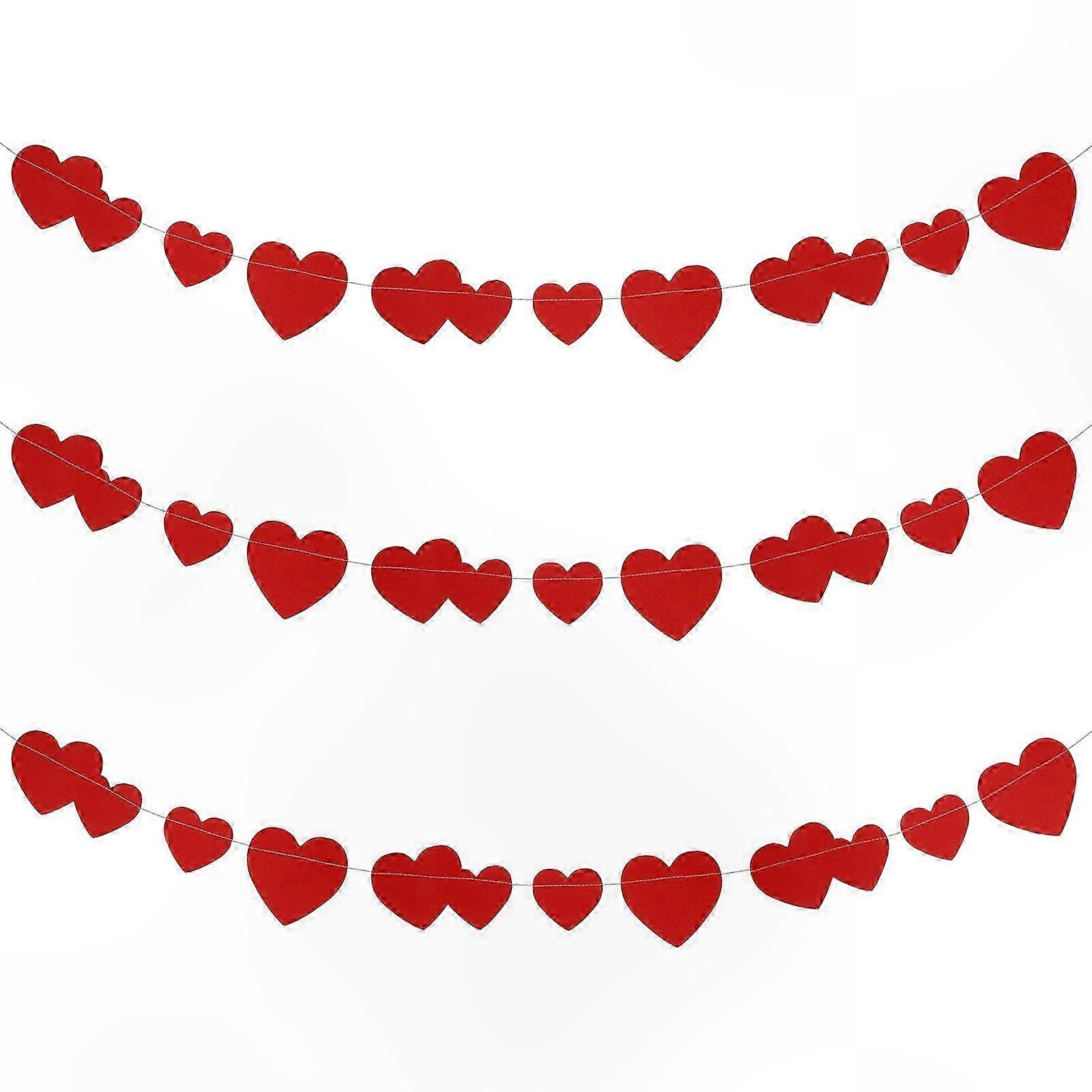 Heart-Shaped Paper Banner Set, 3-Piece String Decoration for Hanging Displays