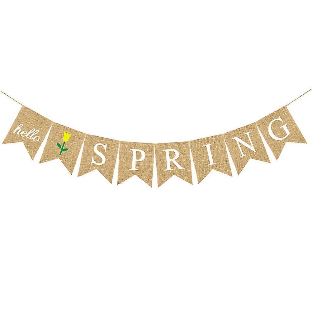 Hello Spring Decorative Bunting Banner Colorful Linen Burlap Swallowtail Flag Party Supplies