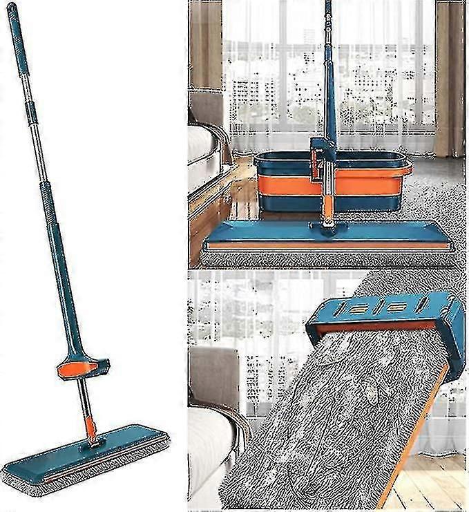 Features1. Good Material: The self wringing flat mop board and self Extrusion system adopt high quality PP material, improving durability and water resistance. Long stainless steel mop handle is lightweigh but satisfies different users&39; height. microfiber mop pads Acceptance machine washing.2. No More Heavy Buckets: This microfiber flat mop is a self-cleaning floor mop, which can keep your hands away from water and dirty. Pull and push the easy wringing system, you can quickly clean used mop pads in a few seconds. No need to carry heavy buckets with you all the time anymore.3. Satify Your Floor Cleaning Needs: One mop can clean your whole house. Good at both wet and dry use. With Speedy liquid absorption, the mop is suitable to use in the kitchen and bathroom. Quickly absorb oil, foam, water stains and other spills. It can also Sweeping hair and dirt particles efficiently.4. Clean Every Corner of Your House: The lazy hands wash free mop head rotates 360 degrees. So it goes into narrow corners with ease for deep floor cleaning. Wipe floors under bed, sofa, wash basin, cabinet, cupboard and easily bypass obstacles and save effort for moving heavy furniture.5. Versatile Mop: You can use the flat mop to simply clean the ceiling, wall, window, bathroom door. The mop is friendly to all floor surfaces, including laminate, tile, hardwood, glass, cement and concrete. After use, the mop can be stored in an Straight line way or hung on a hook, saving more space.SpecificationMaterial: MicrofiberColor: BlueSize: 55 x 16 x 11 cmWeight: 650 gPackage Include:1x Mop2x Microfiber Clothor1x Mop4x Microfiber Cloth
