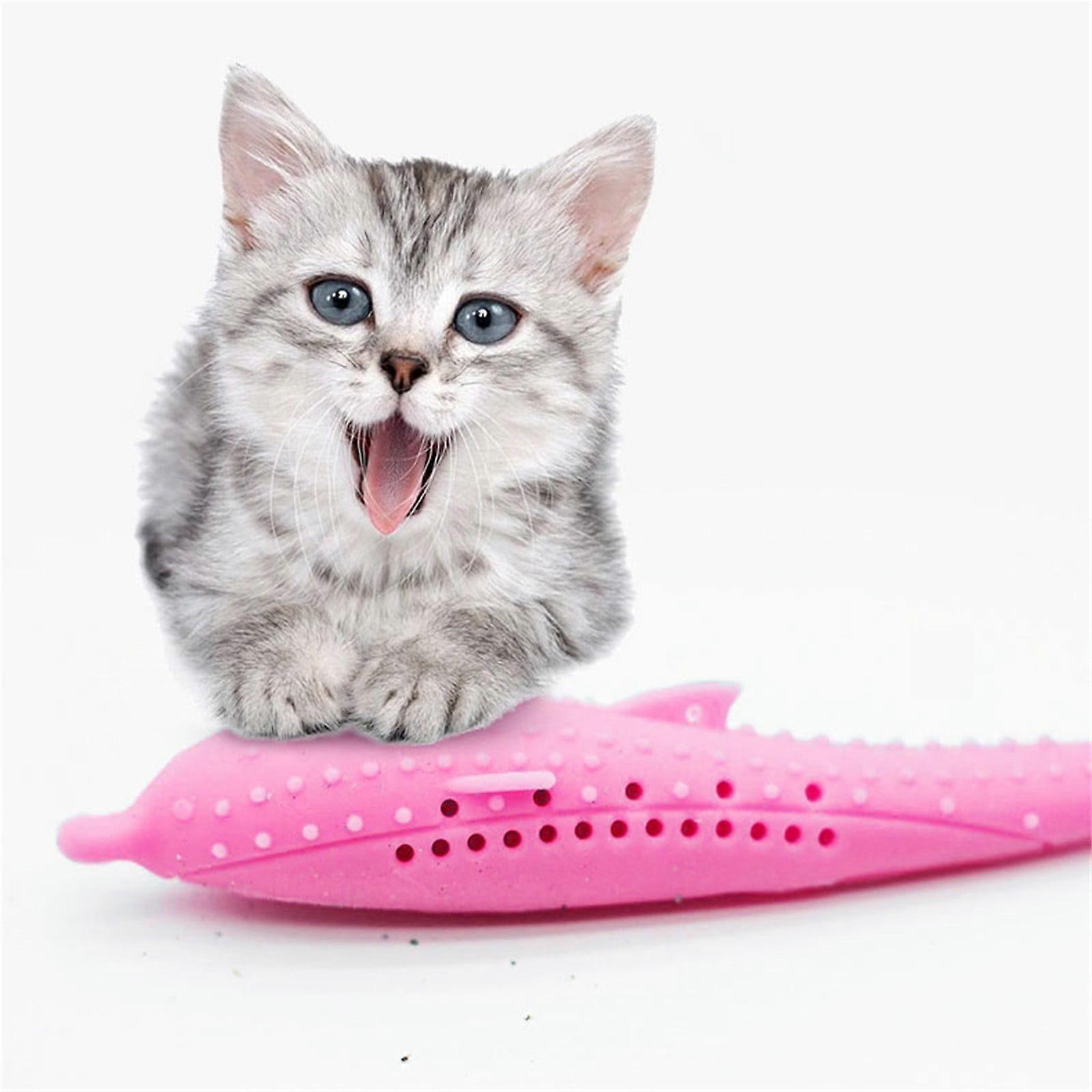 HKUKY Fish Shape Cat Toothbrush with Catnip, Silicone Molar Stick Catnip Toys, Chew Teeth Cleaning Toy for Cats Kitty