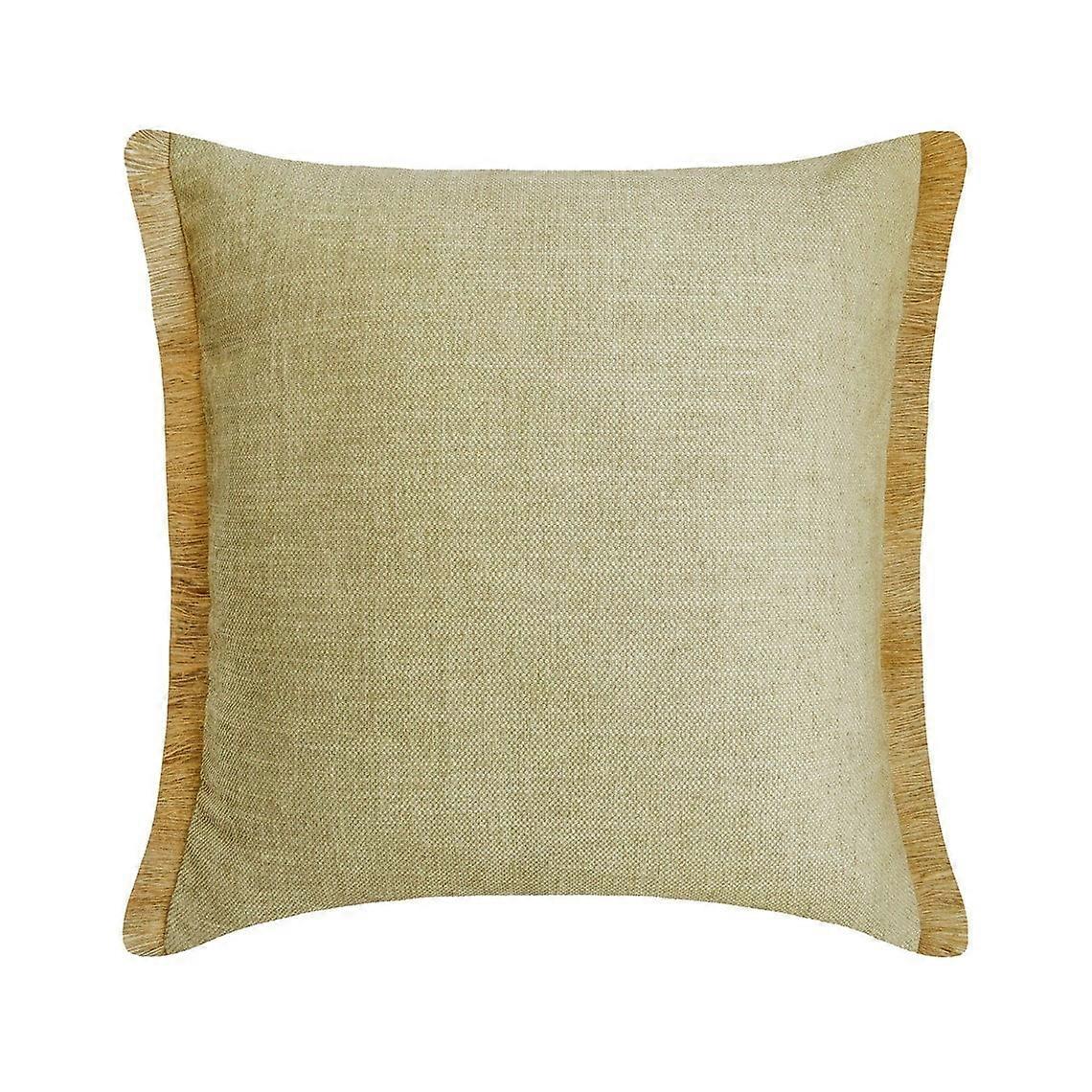 HomeCentric Beige 12x12 in (30x30 cm) Throw Pillows Set of 2, Jute Lace Moroccan Style for Couch, Solid Contemporary Pattern with Jute Fringe