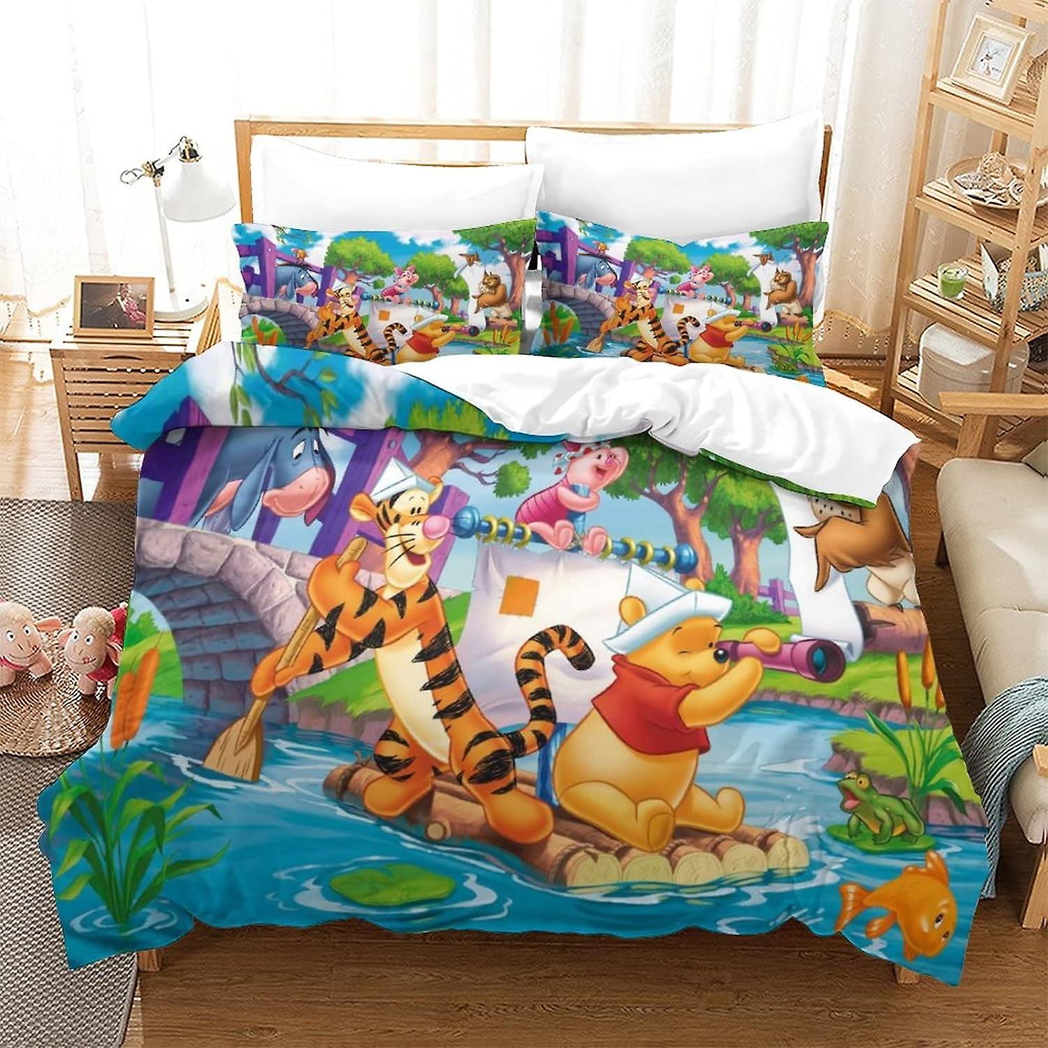 HOUKIG 3D Winnie The Pooh Effect Children And Adults Printed Comforter Set with Pillowcases Comforter Bedding Set (3d Animation)