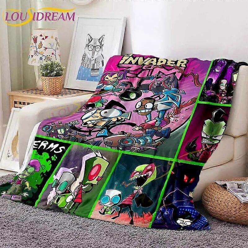 Invader ZIM Soft Blanket Alien Print Blanket 3D Cartoon Throw Flannel Blanket for Bed Sofa Office Air Conditioner Blanket Gifts