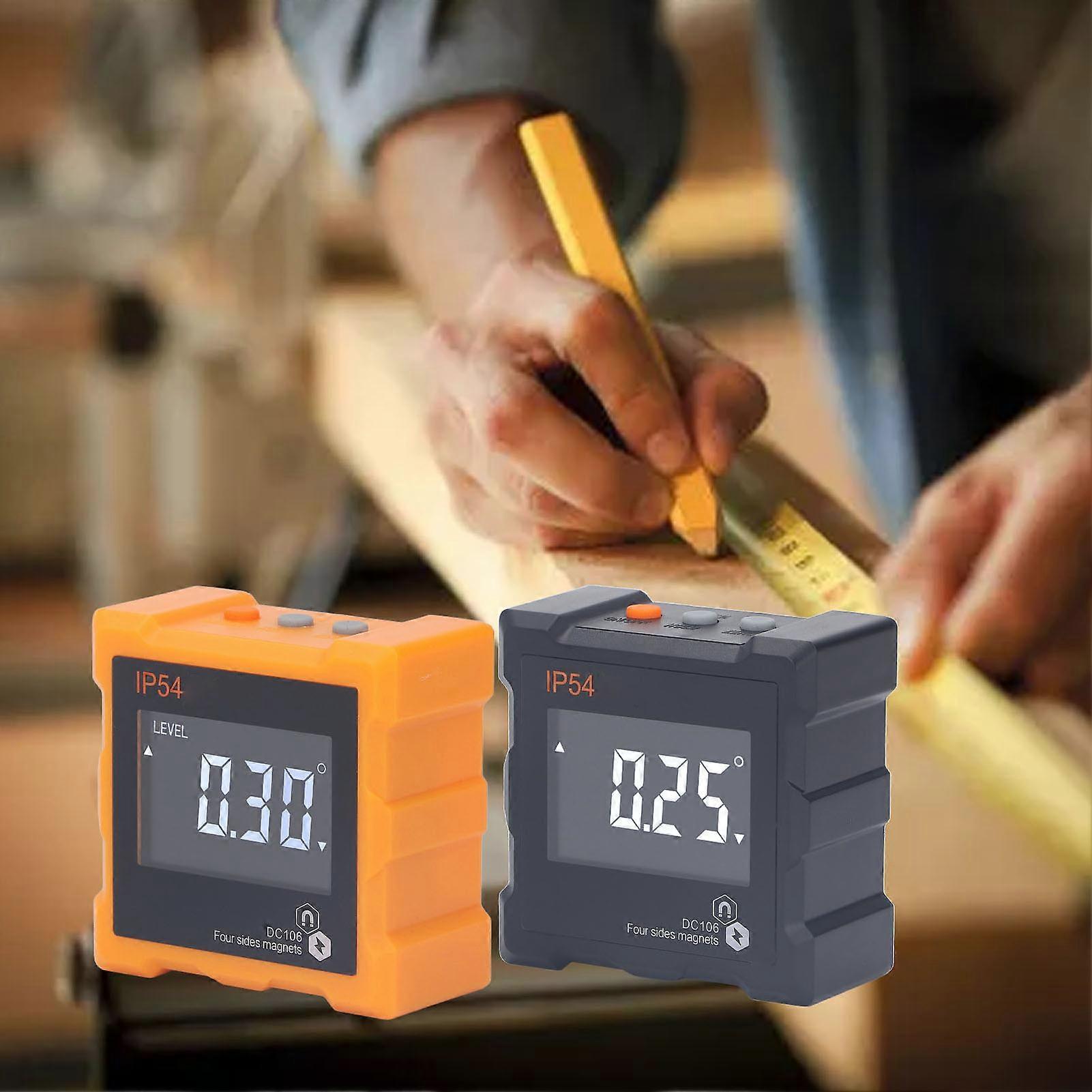 IP54 Angle Finder 4x90° LCD Digital Display 4 Side Strong Magnetic Angle Gauge Inclinometer 360° 1300mAh Orange
