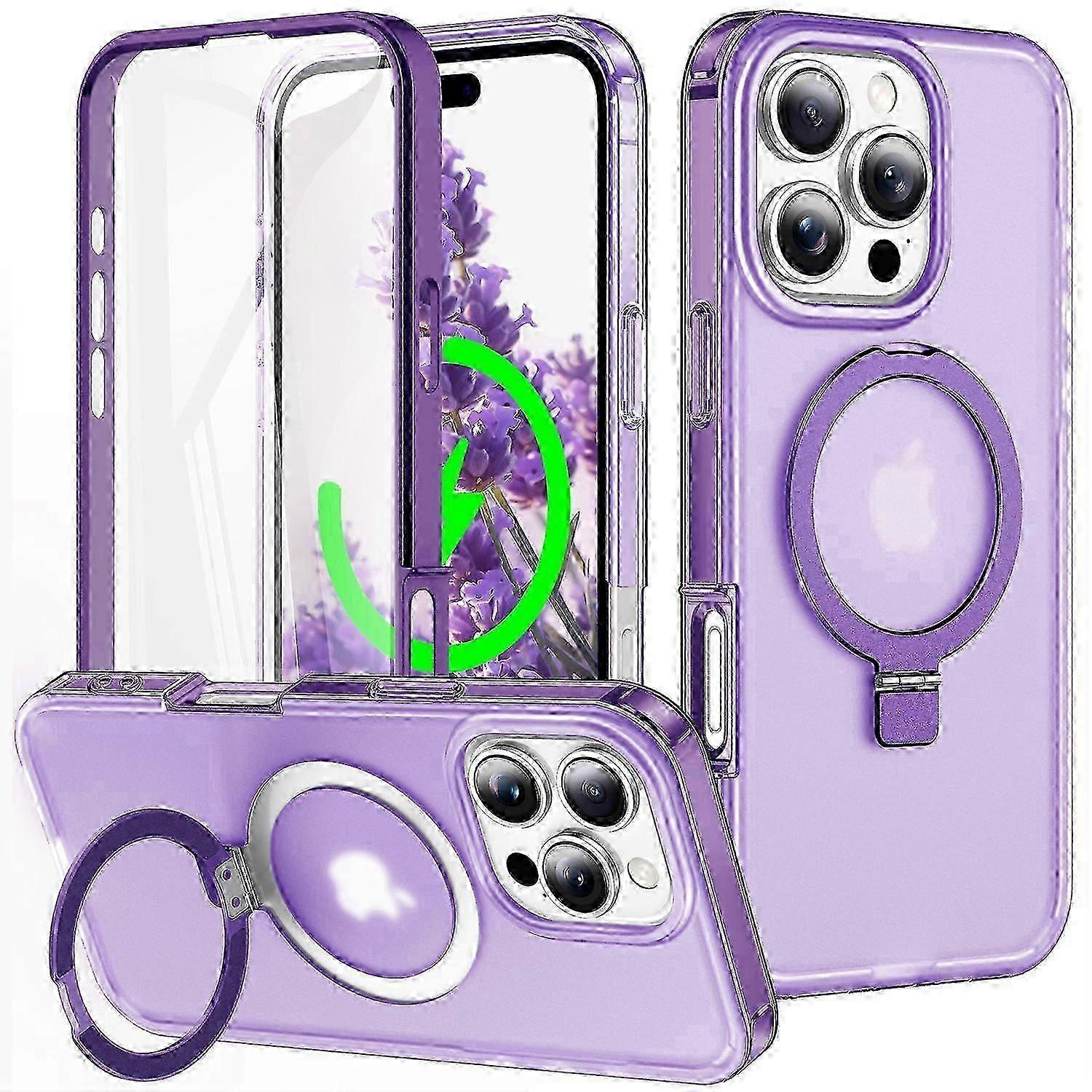 For iPhone 16 Pro Case Frosted TPUandPC Phone Cover with Magnetic Kickstand PET Screen Protector Compatible with MagSafe - Black High-Quality Materials: Made from a combination of high-quality TPU, PC, PET screen protector and metal bracket, ensuring your phone is safeguarded against daily wear and tear Compatible with MagSafe Accessories: With perfectly aligned built-in super strong magnets, the case is compatible with MagSafe accessories and can faster wireless charging Magnetic Ring Holder Kickstand: The integrated ring holder enhances grip and comfort. Its multi-angle adjustment accommodates various hand positions, eliminating finger strain Full Protection: Built in a screen protector and a raised camera bezel offers additional protection against scratches, while the reinforced corners ensure shock absorption, safeguarding your phone from drops and impacts Easy Installation: The case is designed for easy installation and removal, making it practical for daily use while maintaining a sleek and stylish appearance Package included: 1 x Phone Case (with PET Screen Protector) Other items not included