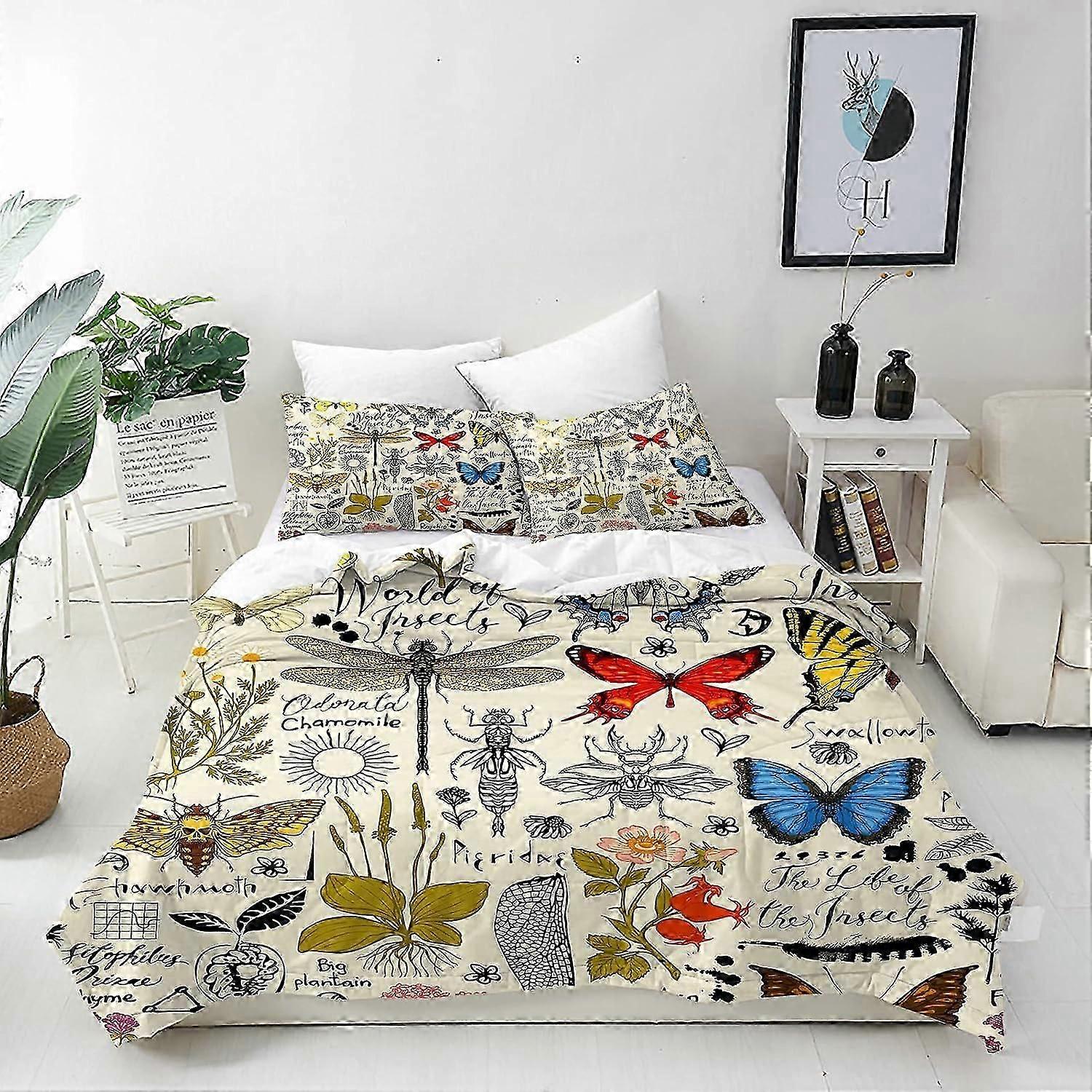J3680 Bed Sheets Insect Duvet Cover Set Soft Comforter Cover Set with Abstract Butterfly Beetle Print Pattern 3 Piece Bedding Set with Pillowcase All