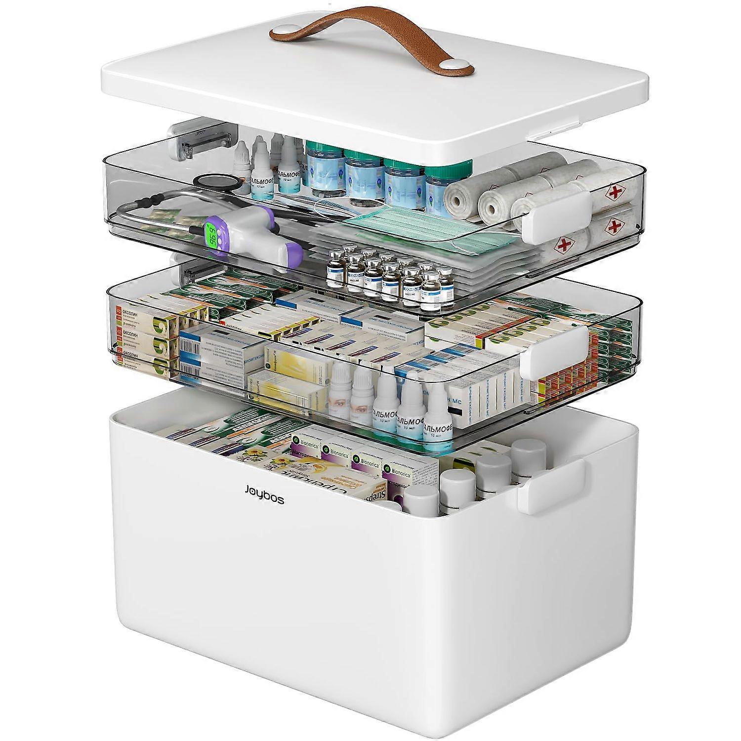 JOYBOS Household 3-Layer Large Capacity Medicine Box Family First Aid Kit Multi-Compartment Storage