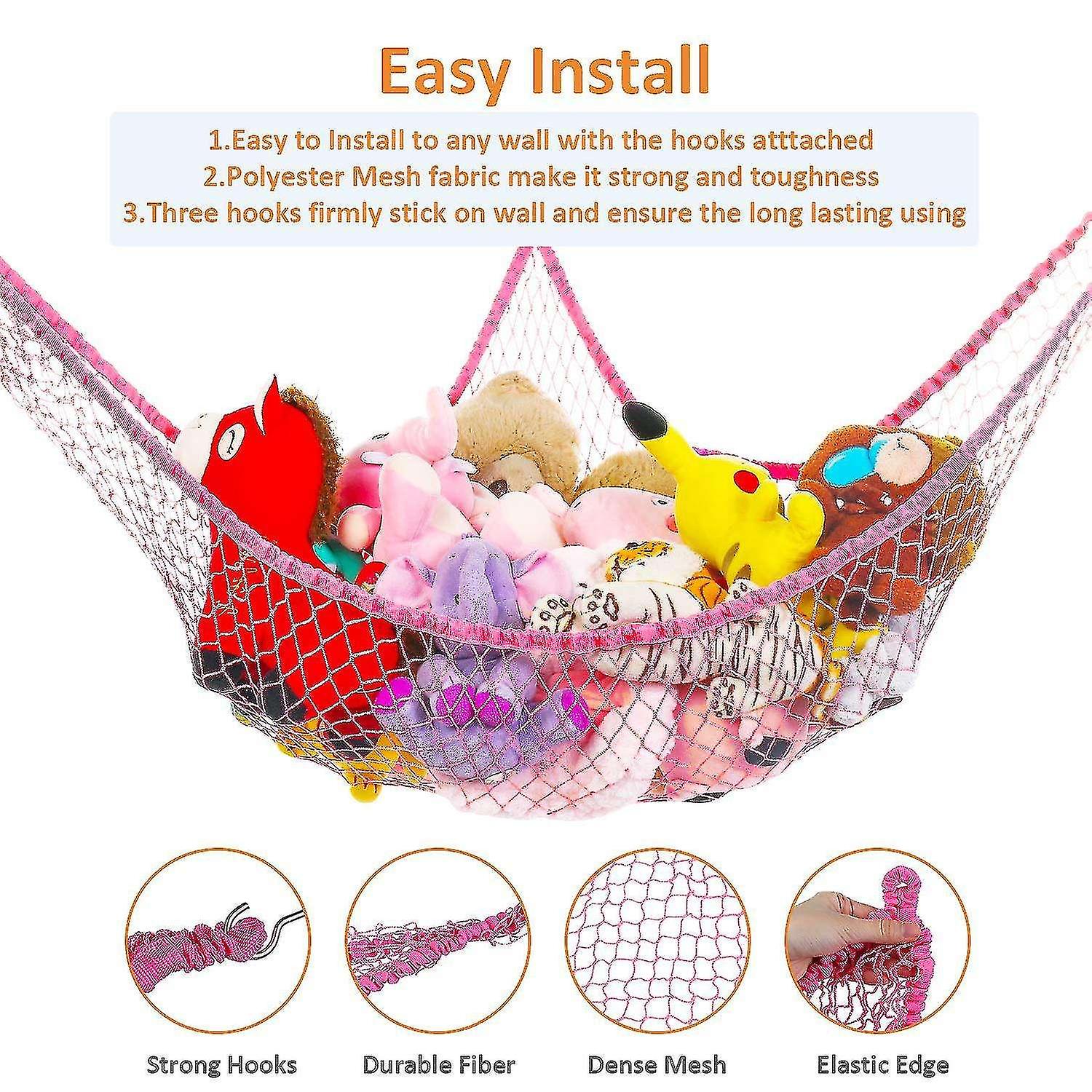 Jumbo Toy Hammock Stuffed Animals Corner Net Large Hanging Net(pink)