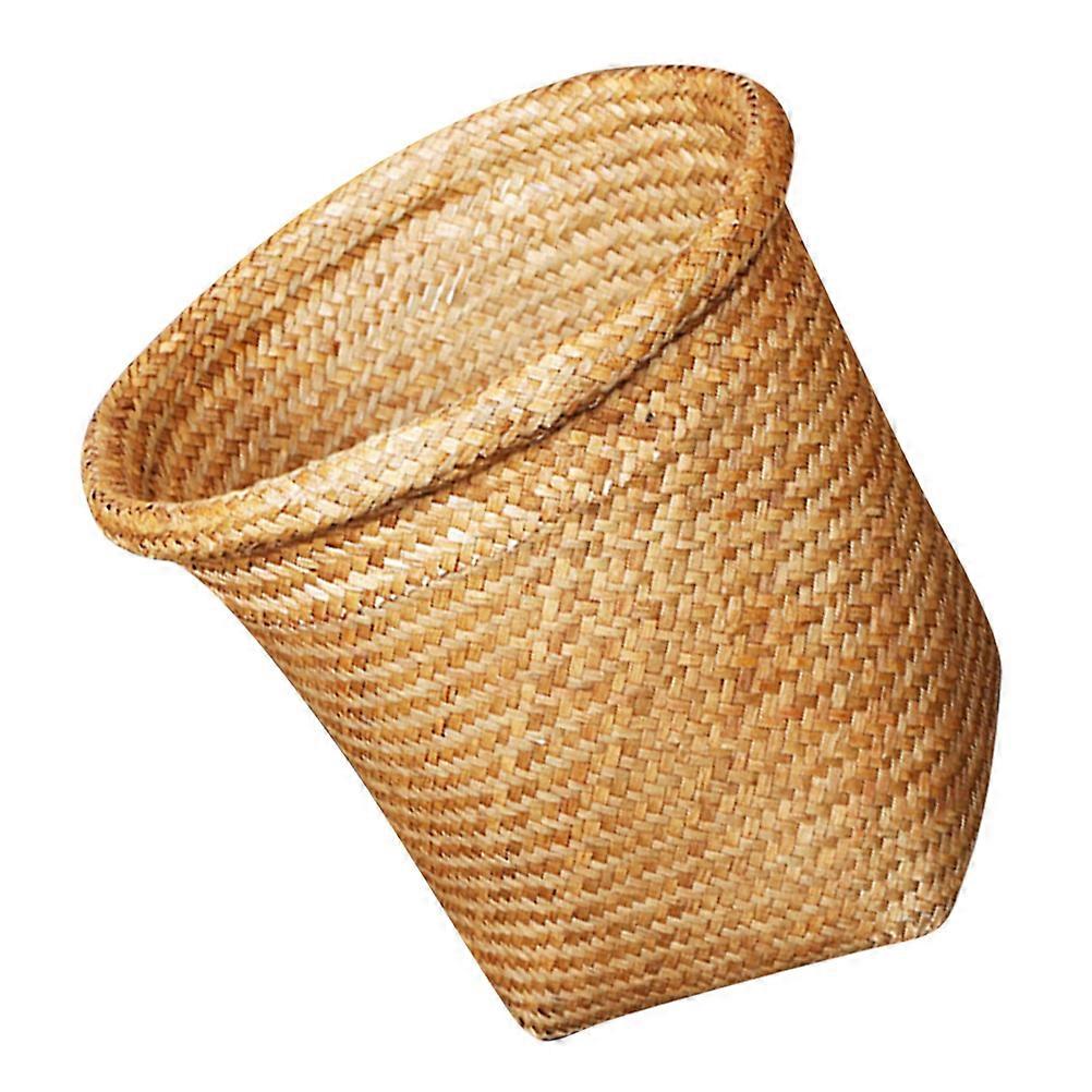 Khaki Woven Basket for Desk Storage Crafted from Straw Perfect for Organizing Small Items 7.5 Inches