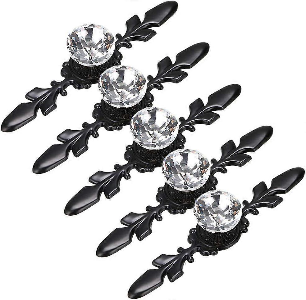 Kiibsot 5 Pcs 4.7"/6.7" Drawer Knobs Pull Handles, Crystal Glass Diamond Decorative Knobs with Plate, Cabinet Door Knobs with Screws for Kitchen