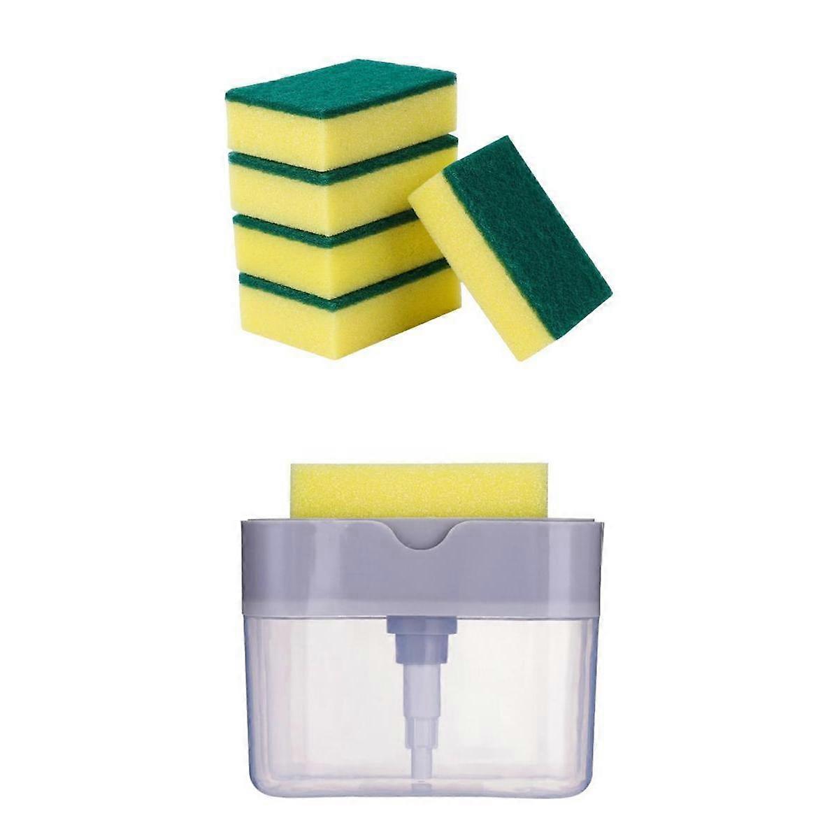 Kitchen Dishwashing Soap Pump Dispenser & Sponge Gray